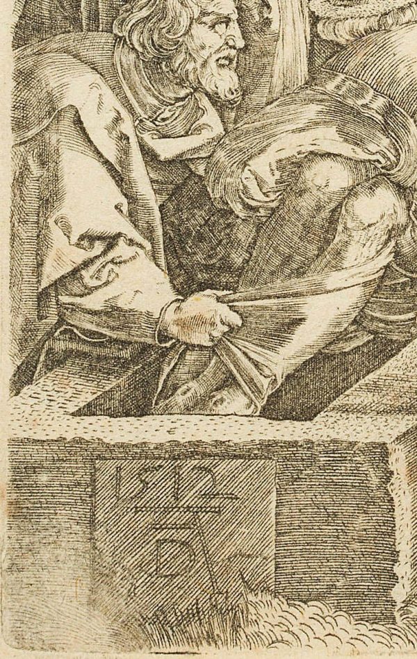- Bezeichnung: links unten in der Druckplatte monogrammiert: “AD” und datiert “1512”, verso von fremder Hand in Bleistift bezeichnet: “B. 15”