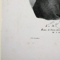 - Beschreibung: Lithographie von Burggraaff, bezeichnet unten: ” J. A. Senave, Peintre de Genre, membre de plusieurs academies et societes sav. Né à Loo le 12 September 1758. J. J. Eeckhout Lithog. de Burggraaff”. Porträt des J. A. Sénave mit Kappe nach rechts. Burggraaff war ein von etwa 1801 bis 1850 tätiger belgischer Lithograph an der königlichen Akademie in Brüssel. Bekannt wurde er vor allem durch seine Porträts zeitgenössischer Künstler. Jacques Albert Sènave (Loo 1758 – Paris 1823) war Figuren-, Landschafts-, Historien- und Genremaler.