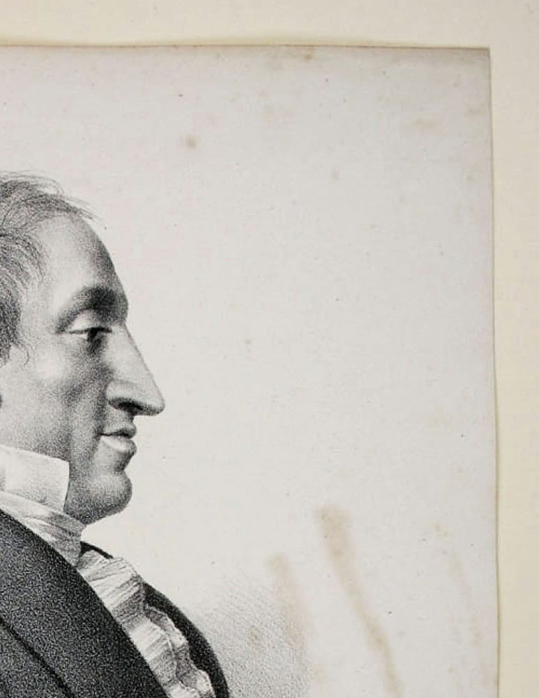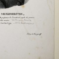 - Beschreibung: Burggraaff, Porträt des Joseph Charles Meulemeester, Lithographie nach Jakob Josef Eeckhout, um 1830. Beschreibung:Lithographie von Burggraaff, bezeichnet unten: “J. C. Meulemeester, Craveur en taille douce et Peintre à l`aquarelle, professeur de l`académie royale de gravure d`Anvers, membre de plusieurs academies et societes savantes. Né à Bruge le 23 Avril 1774″. J. J. Eeckhout Lithog. de Burggraaff”. Porträt des J. C. de Meulemeester im Profil nach rechts. Burggraaff war ein von etwa 1801 bis 1850 tätiger belgischer Lithograph an der königlichen Akademie in Brüssel. Bekannt wurde er vor allem durch seine Porträts zeitgenössischer Künstler. Joseph Charles de Meulemeester (Brügge 1771 – Antwerpen 1836) war Kupferstecher. Er war u. a. in Rom und Antwerpen tätig.