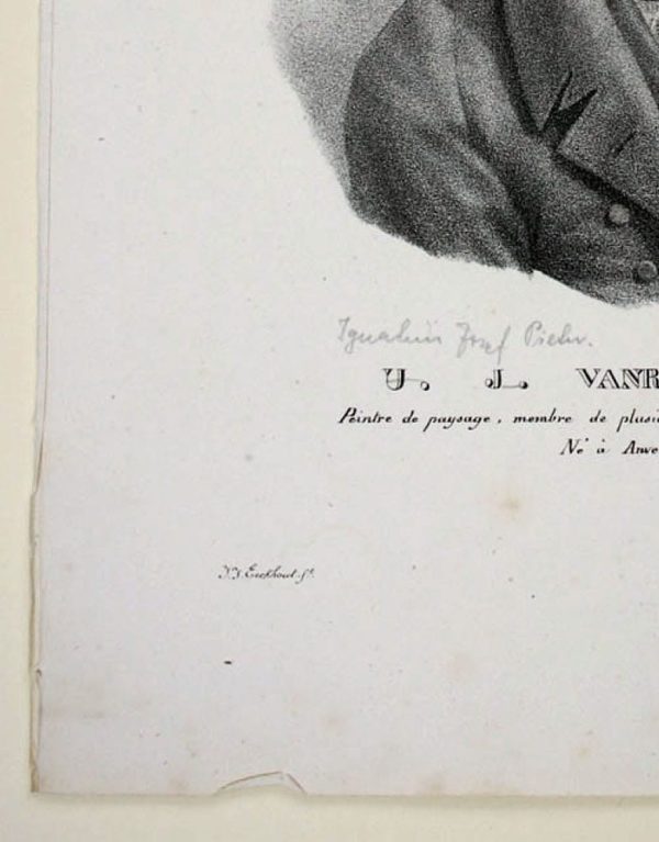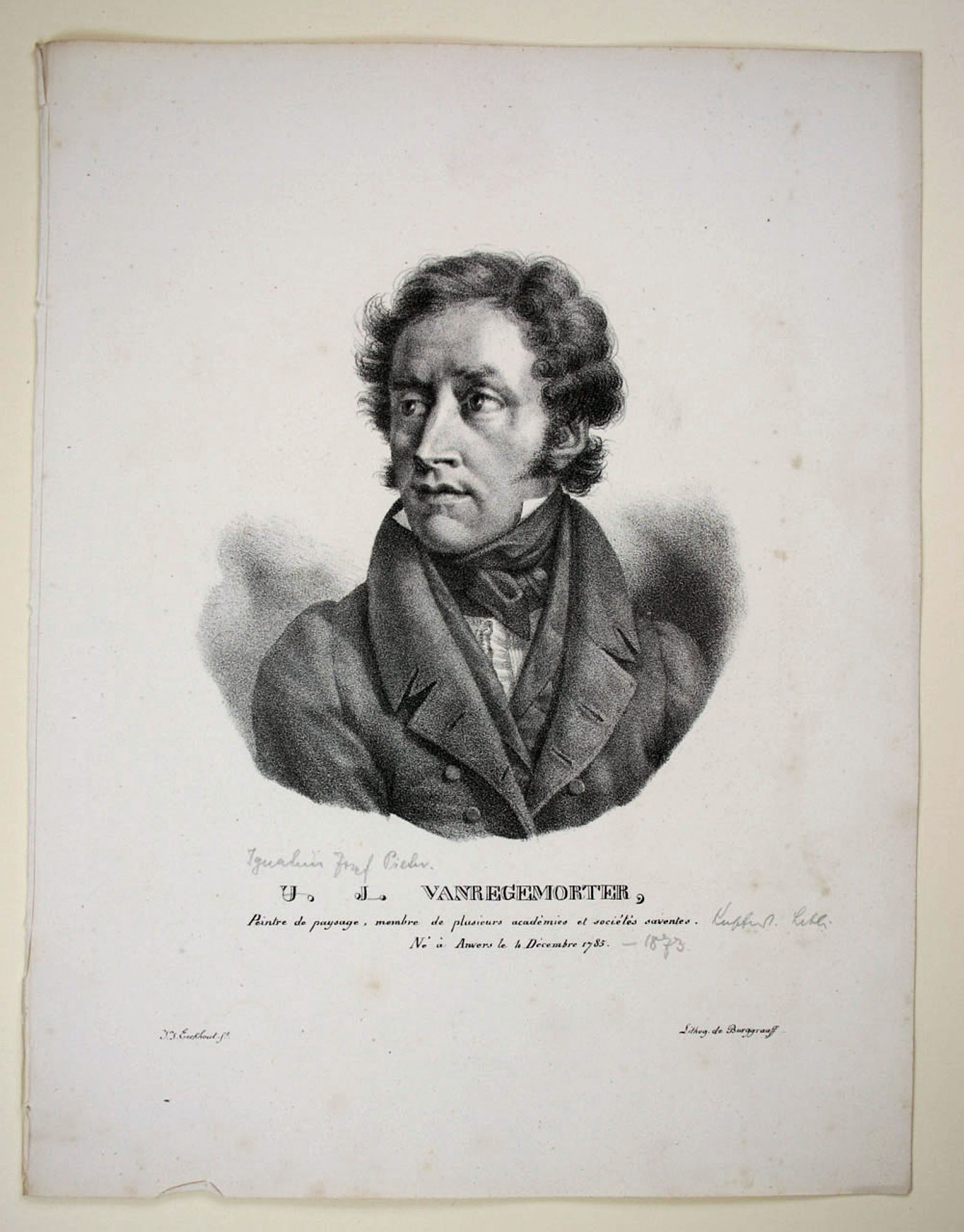 - Description: Burggraaff, Portrait of Ignatius Jozef Pieter van Regemorter, lithograph after Jakob Josef Eeckhout, c. 1830. Description:Lithograph by Burggraaff, inscribed at the bottom: “U. L. Vanregemorter, Peintre de paysage, membre de plusieurs academies et societes savantes. N Anvers le 4 Decembre 1785. J. J. Eeckhout Lithog. de Burggraaff”. Portrait of Ignatius Jozef Pieter van Regemorter to the left. Burggraaff was a Belgian lithographer working at the Royal Academy in Brussels from about 1801 to 1850. He became known mainly for his portraits of contemporary artists. Ignatius Jozef Pieter van Regemorter (Antwerp 1785 – Antwerp 1873) was a genre painter, marine painter, landscape painter, engraver and lithographer. He had learned from his father, Petrus Johannes R.. He worked in Amsterdam, Antwerp, Paris, Ghent and Brussels, among other places.