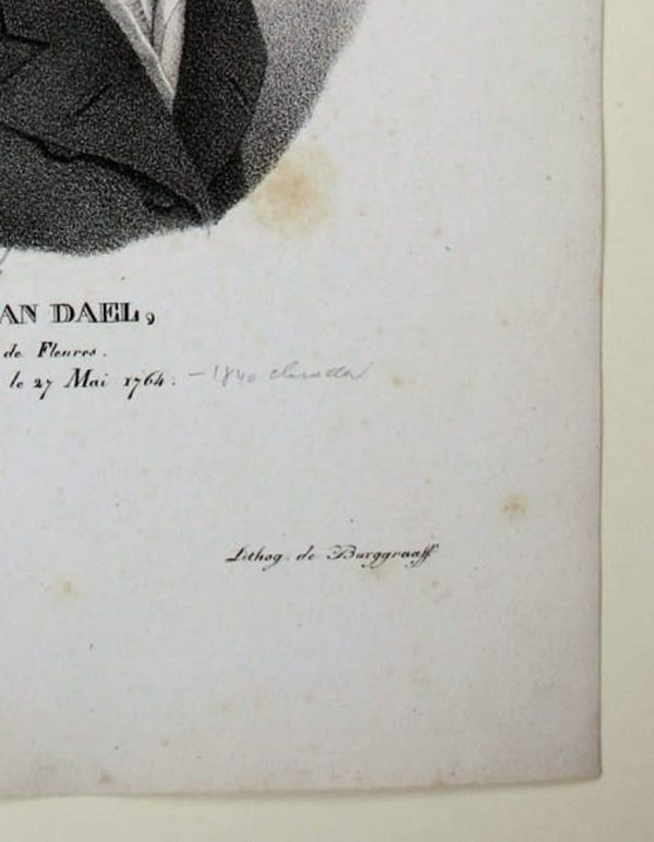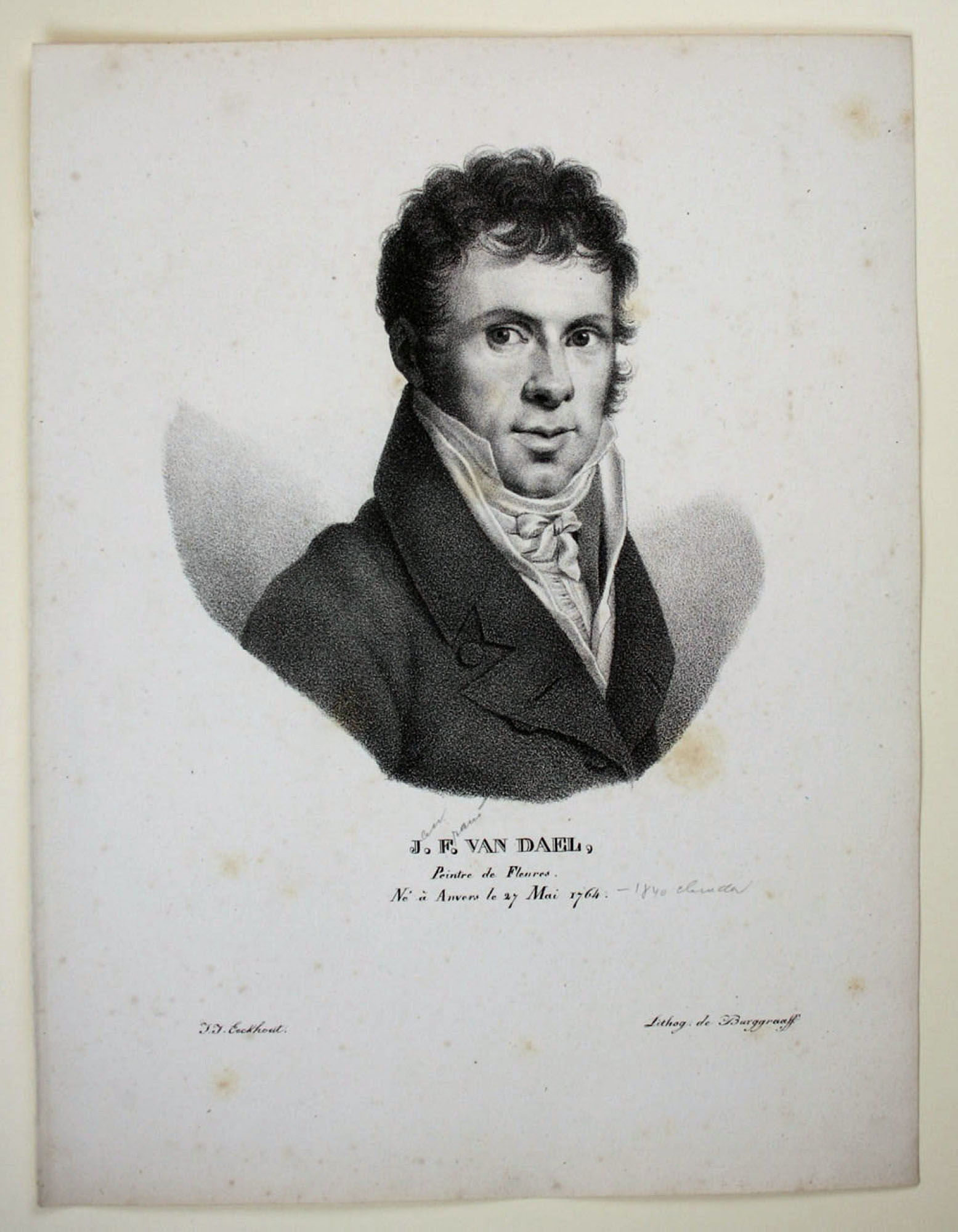 - Description: Burggraaff, Portrait of Jan Frans van Dael, lithograph after Jakob Josef Eeckhout, c. 1830. Description:Lithograph by Burggraaff, inscribed at the bottom: “J. F. van Dael, Peintre de Fleures. Ne Anvers le 27 Mai 1764. J. J. Eeckhout Lithog. de Burggraaff”. Portrait of Jan Frans van Dael in his younger years to the right. Burggraaff was a Belgian lithographer working at the Royal Academy in Brussels from about 1801 to 1850. He became best known for his portraits of contemporary artists. Jan Frans van Dael (Antwerp 1764 – Paris 1840) was a Belgian painter of flowers, landscapes and miniatures.