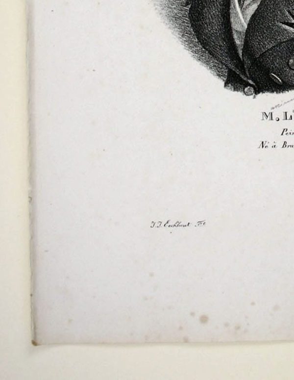 - Beschreibung: Burggraaff, Porträt des Maximilian Lambert Gelissen, Lithographie nach Jakob Josef Eeckhout, um 1830. Beschreibung:Lithographie von Burggraaff, bezeichnet unten: “M. L. Gelissen, Peintre de Paysage. Né à Bruxelles le 27 Fevrier 1787. J. J. Eeckhout Burggraaff lithographe de l`ace: Roy. “. Porträt des jungen Maximilian Lambert Gelissen. Burggraaff war ein von etwa 1801 bis 1850 tätiger belgischer Lithograph an der königlichen Akademie in Brüssel. Bekannt wurde er vor allem durch seine Porträts zeitgenössischer Künstler. Maximilian Lambert Gelissen (Brüssel 1786 – ebenda 1867) war belgischer Landschaftsmaler und Lithograph.