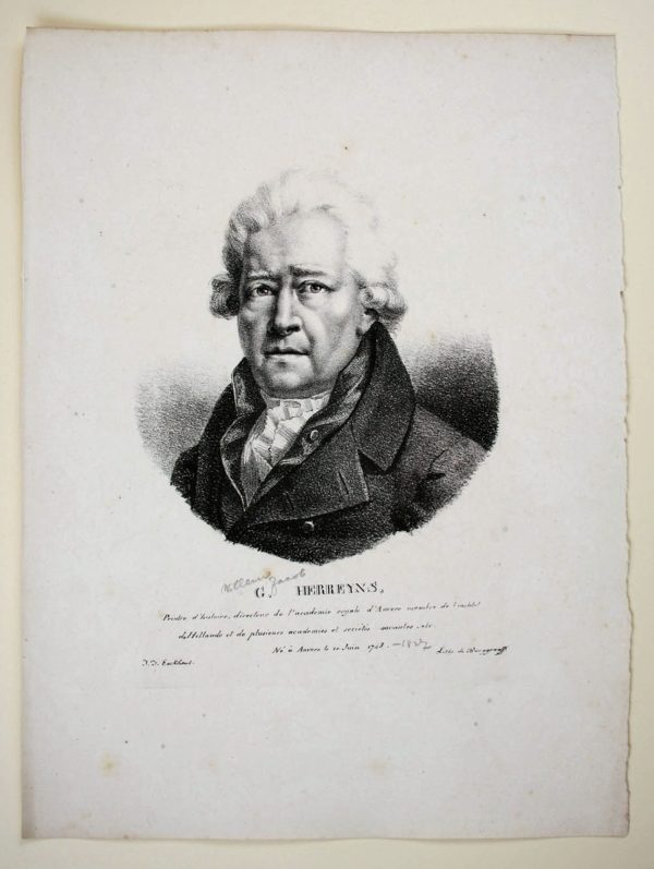 - Description: Burggraaff, Portrait of Willem Jacob Guillaume-Jacques Herreyns, lithograph after Jakob Josef Eeckhout, c. 1830. Description:Lithograph by Burggraaff, inscribed at the bottom: “G. Herreyns. Peintre d`histoire, directeur de l`acadmie royale d`Anvers membre de l`institut de Hollande et de Plusieurs academies et societes savantes etc.. Né à Anvers le 10 Juin 1743. J. J. Eeckhout Litho. de Burggraaff”. Burggraaff was a Belgian lithographer working at the Royal Academy in Brussels from about 1801 to 1850. He became known mainly for his portraits of contemporary artists. Willem Jacob Herreyns (Antwerp 1743 – Antwerp 1827) was a painter and draughtsman.