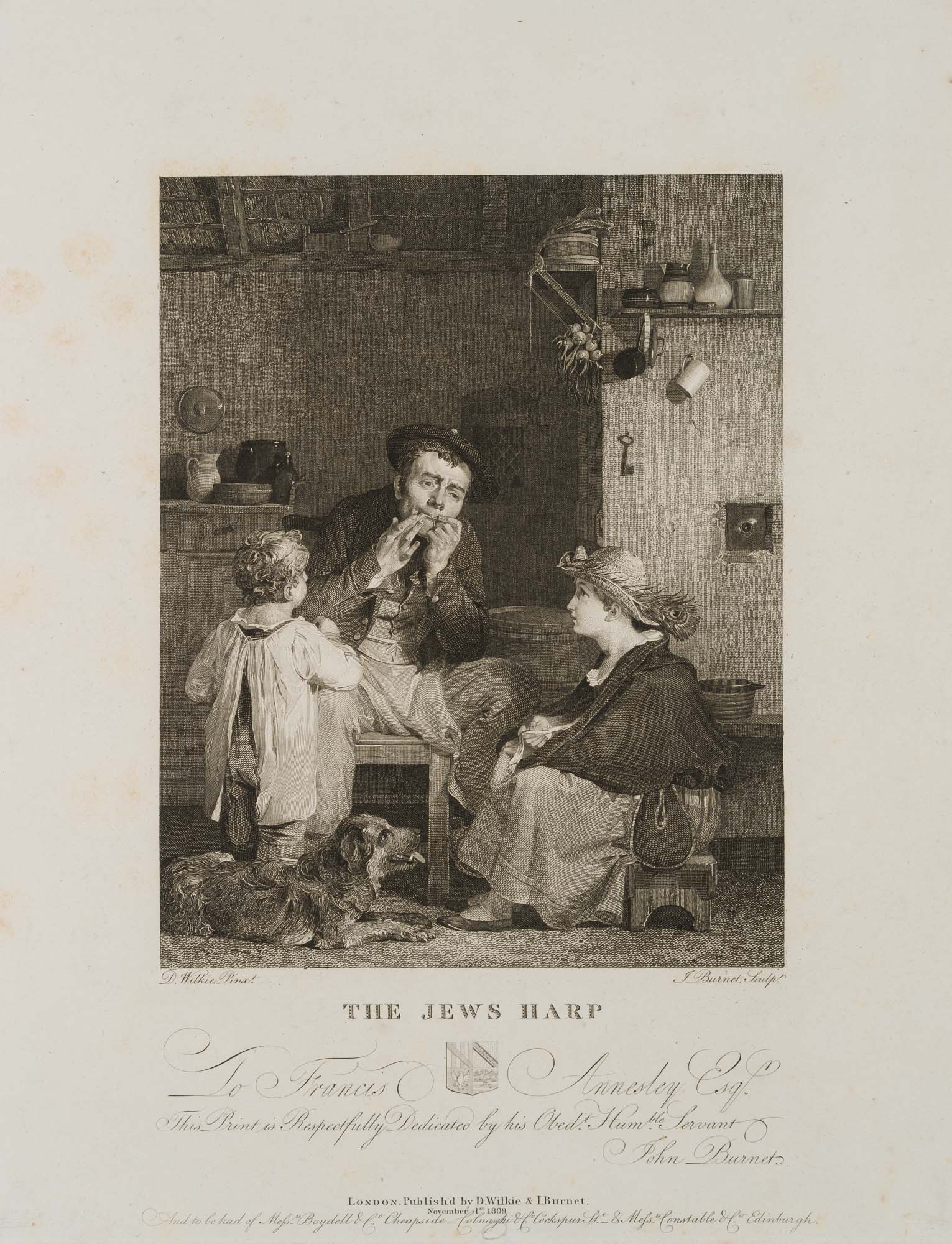 - Description: Signed below the image “D. Wilkie pinxt. / J. Burnet sculpt.”, signed and inscribed in the centre below “To Francis Annesley Esq. / This print is respectfully dedicated by his obed.t Humble Servant John Burnet. / London. Published by D. Wilkie & L. Burnet November 1st 1809”.The Scottish painter and engraver John Burnet went to London in 1805, where he made his name as an engraver by reproducing the works of the Scottish painter David Wilkie. In 1833 he went to Paris to further his education by studying the masterpieces in the Louvre.