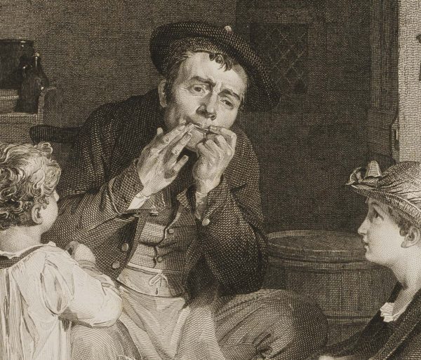 John Burnet (1781 Musselburgh – 1868 Stoke Newington) nach David Wilkie (1785 – 1841 ), “The Jew’s Harp”, Die Maultrommel, um 1809, Kupferstich