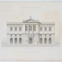 - Description: Below the depiction with the artist’s addresses „E. Wagret del. / Ch. Bury sc.“ underneath titled and inscribed „Des Fossez et Cie. Editeurs / Imp. R. Taneur a Paris.“ Inscribed „ENCYCLOPEDIE D’ARCHITECTURE“ above the image, numbered „Pl. 1007“ and dated XIX SIECLE.