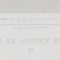 - Beschreibung: Unter der Darstellung mit den Künstleradressen „E. Wagret del. / Ch. Bury sc.“ darunter betitelt und bezeichnet „Des Fossez et Cie. Editeurs / Imp. R. Taneur a Paris.“ Über der Darstellung bezeichnet „ENCYCLOPEDIE D’ARCHITECTURE“, nummeriert „Pl. 1007“ und datiert XIX. SIECLE.