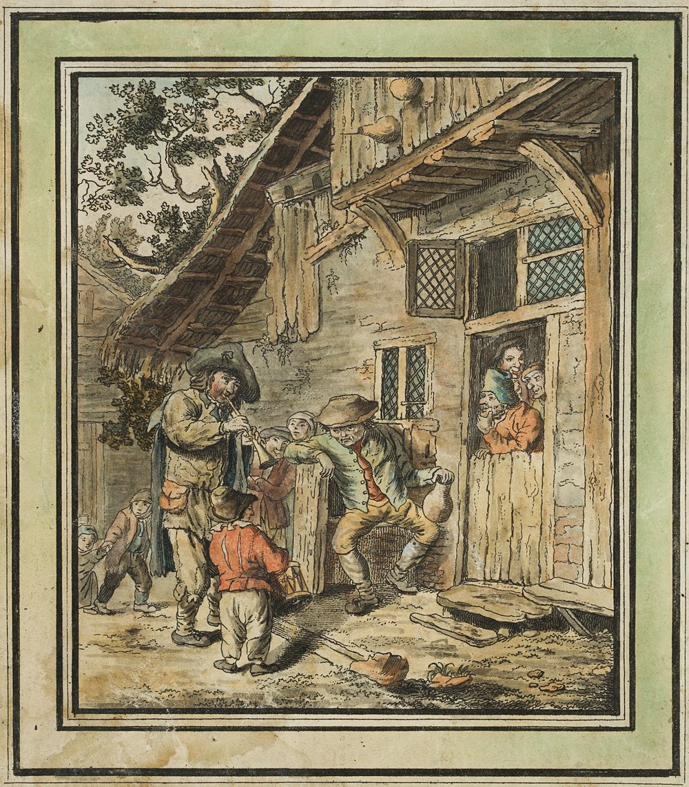 - Schlagworte: Musik, Bauern, Wanderschaft, Wanderer, Rast, Wirtshaus, Bauernhaus, Gehöft, Genre, Trachten, Deutschland, Klassizismus, 1700-1749