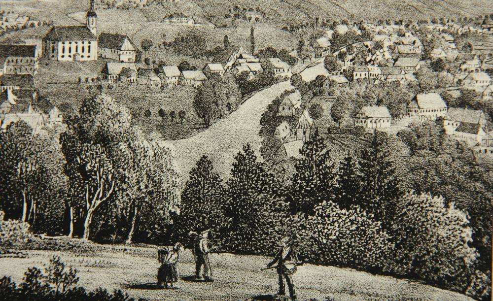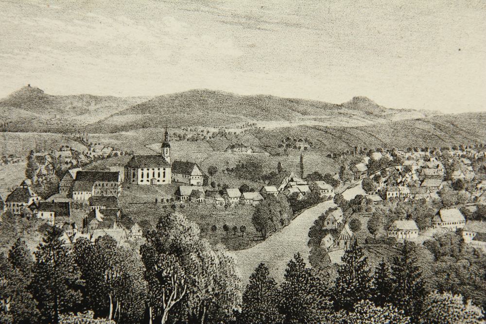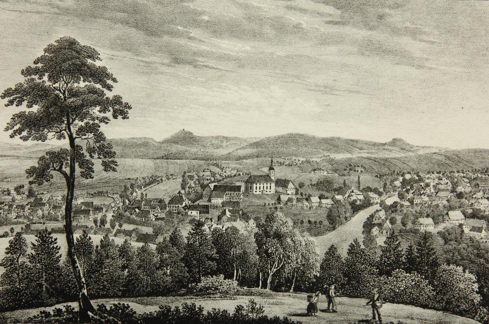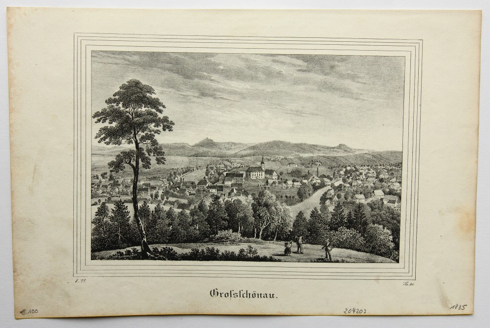 Carl Wilhelm Arldt (1809 Niederruppersdorf – 1868 Löbtau), Ansicht von Großschönau bei Görlitz, um 1835, um 1835, Lithographie