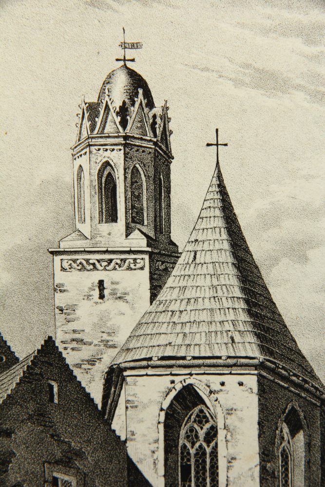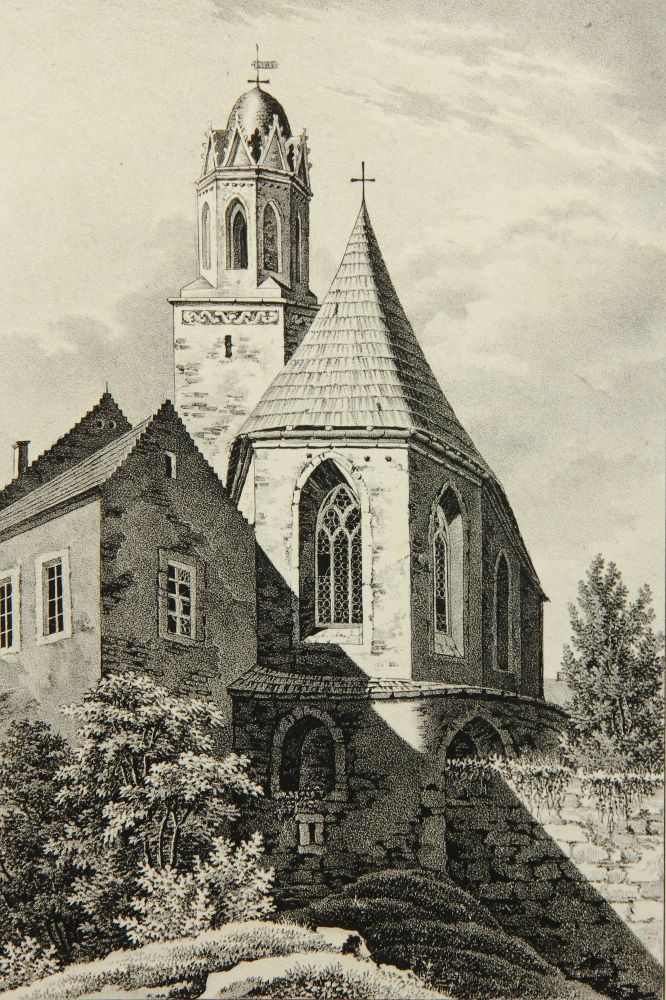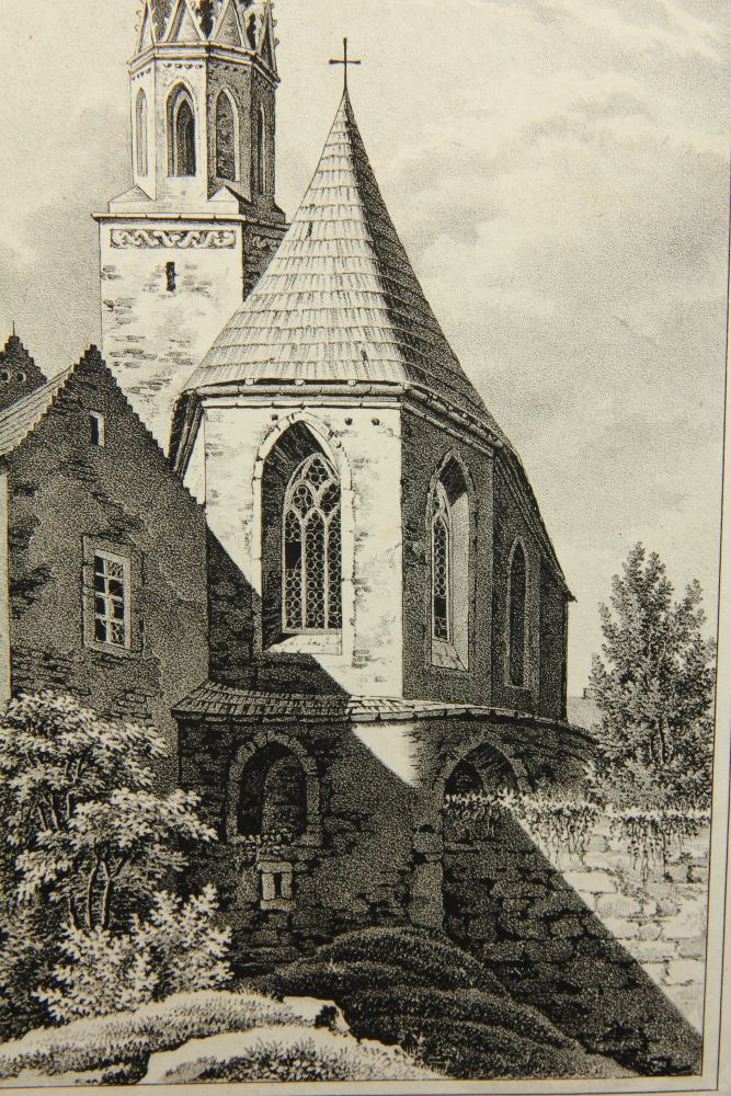 Carl Wilhelm Arldt (1809 Niederruppersdorf – 1868 Löbtau), The Wendish Church in Löbau (choir and tower), 19th century, Lithography