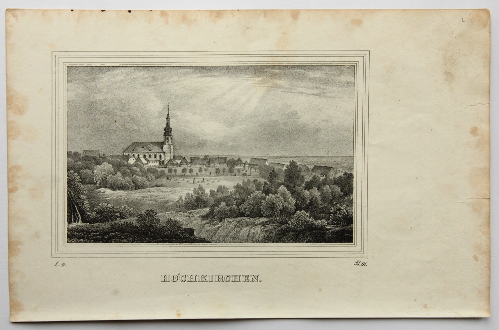 Carl Wilhelm Arldt (1809 Niederruppersdorf – 1868 Löbtau), Ansicht von Hochkirch bei Bautzen, Blick auf Kirche, 19. Jahrhundert, Lithographie