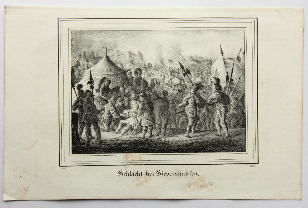 - Schlagworte: Historiendarstellung der Schlacht bei Sievershausen 1553, Militär, Deutschland, Romantik, 1800-1849