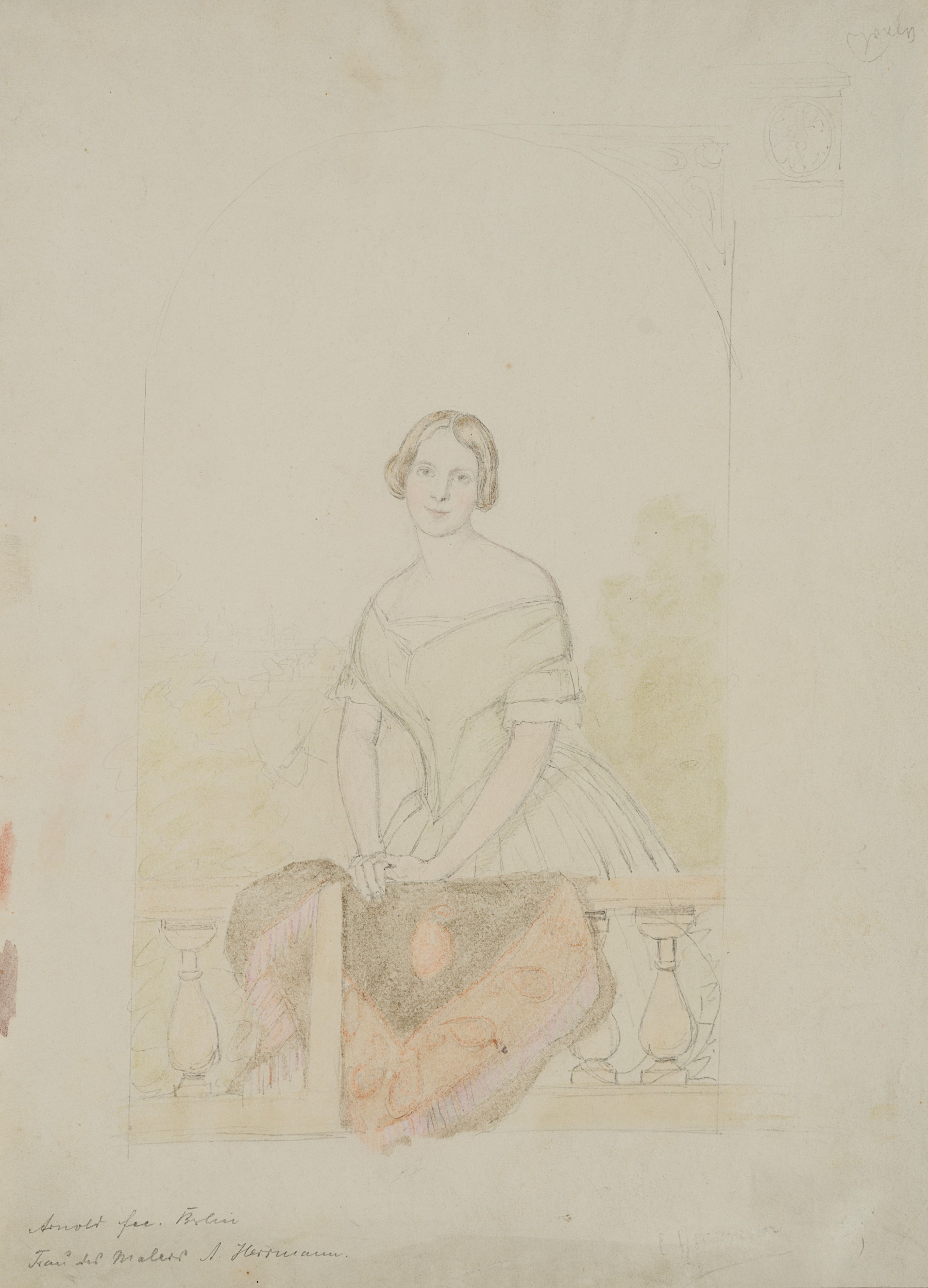 Carl Johann Arnold (1829 Kassel/Berlin – 1916 Jena), Wife of the painter A Herrmann, c. 1850, Pencil
