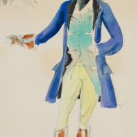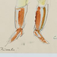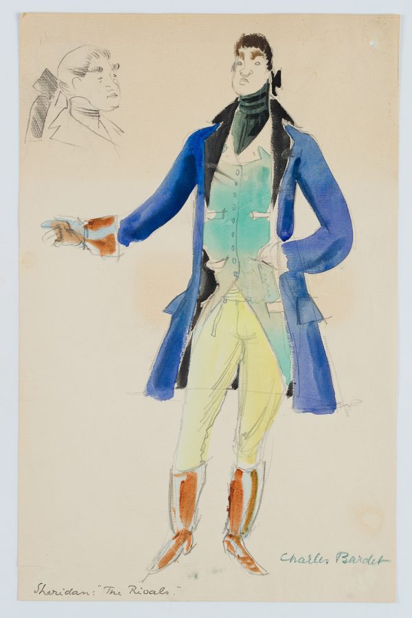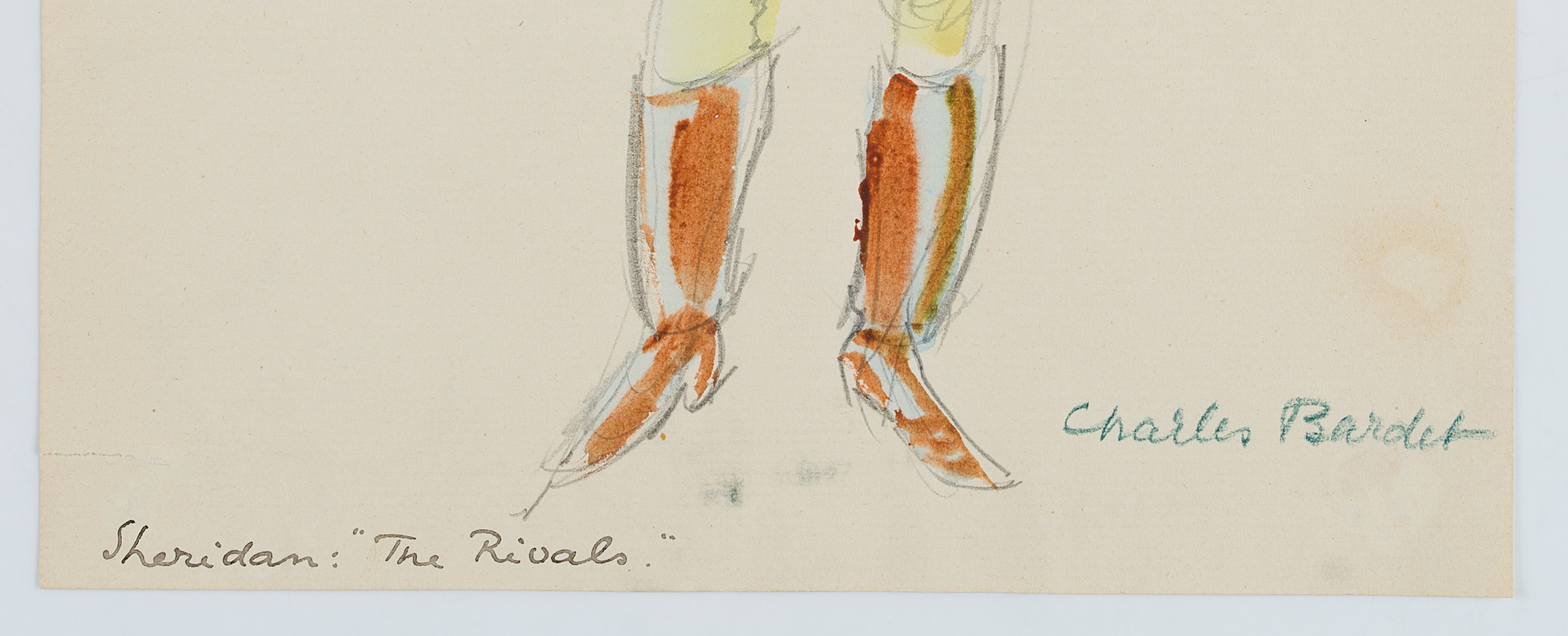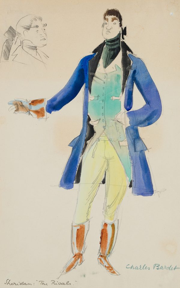 - Description: Fine watercolour pencil drawing of a costume representation from Richard Brinsley Sheridan’s play “The Rivals”.