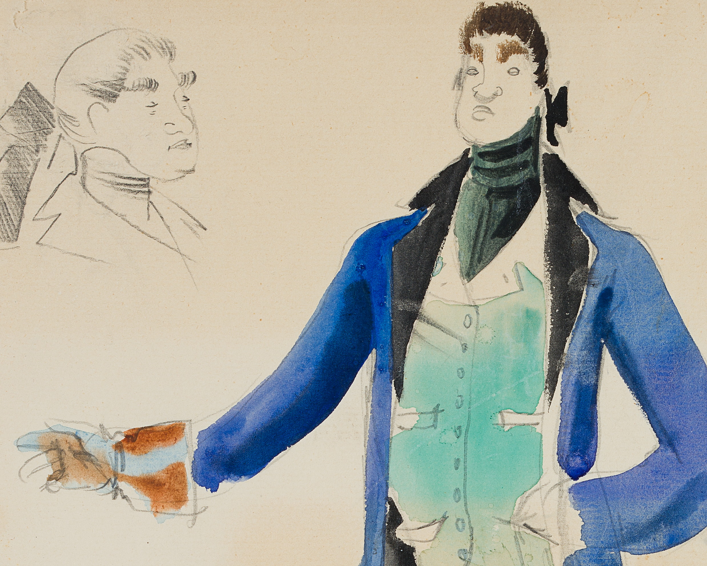 Charles-Edouard Bardet (1911 Neuchâtel – 1987 Zurich), Costume Study for Sheridan “The Rivals”, Men’s Fashion, , Pencil