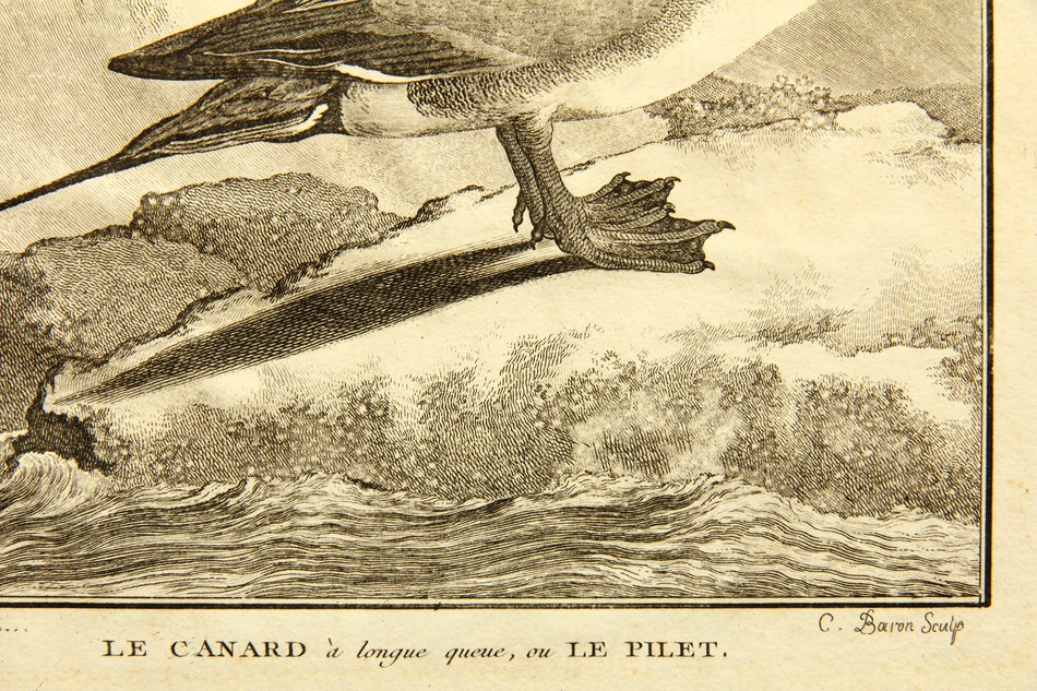 Claude Baron (born 1738 Paris), Zoolog Illustration of a duck, 18th century, Copper engraving