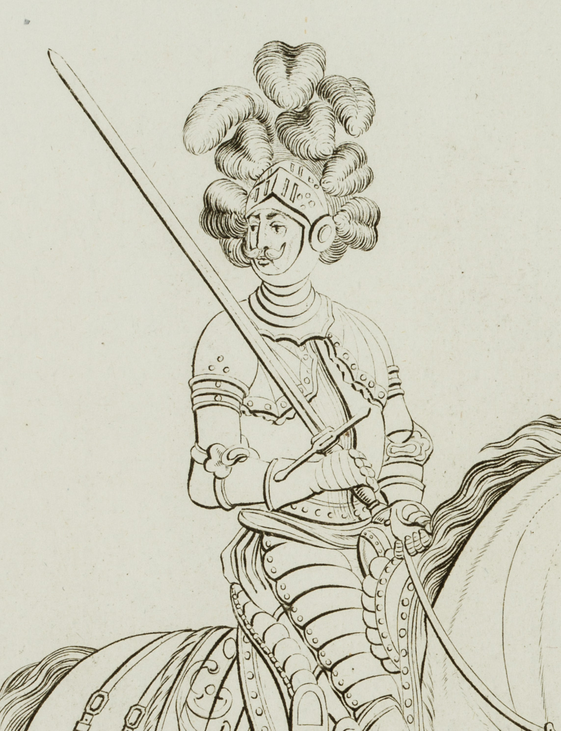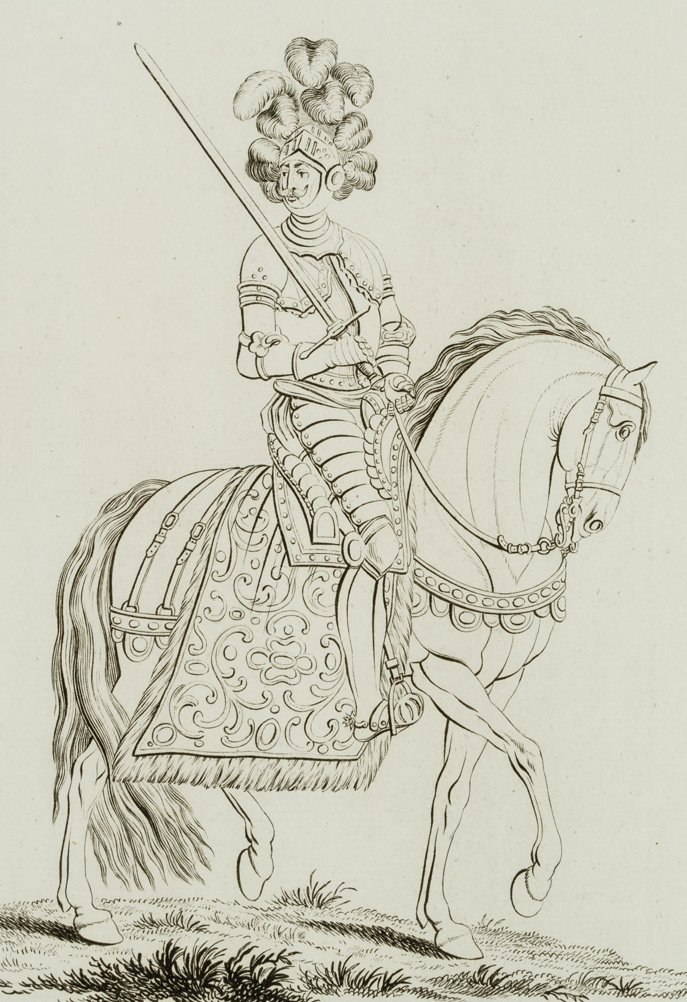 Carl Moritz Berggold (1759 Königstein Fortress, Saxony – 1814 Leipzig) attributed, Rider with armour and horse, 19th century, Etching
