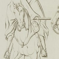 • Description: Study of a horse with riders. Paginated in the centre below the depiction: “VI.”; inscribed in pencil lower right: “507056”.