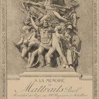 - Beschreibung: Kriegerdenkmal zur Erinnerung an Mattraits Paul, unter der Darstellung bezeichnet: “A la memoire de Mattraits Paul, Maréchal des Logis au 53.e Régiment d’Artillerie / Mort Pour La France / le 9 Janvier 1918 / Hommage de la Nation / Loi du 27 Avril 1916”. rechts mit faksimilierter Unterschrift: “Le Président de la République: RPoincaré (Raymond Poincaré)”. Unten links signiert “Composé et gravé par Ch. Coppier” unten mittig: Imprimé chez Goupil & Cie”.