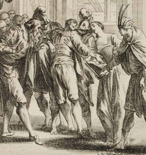 Charles Dominique Eisen (1720 Valenciennes – 1778 Brüssel), Buchillustration zu “Alzire” vom französischen Schriftsteller und Philosophen Voltaire, 18. Jahrhundert, Radierung