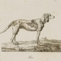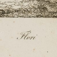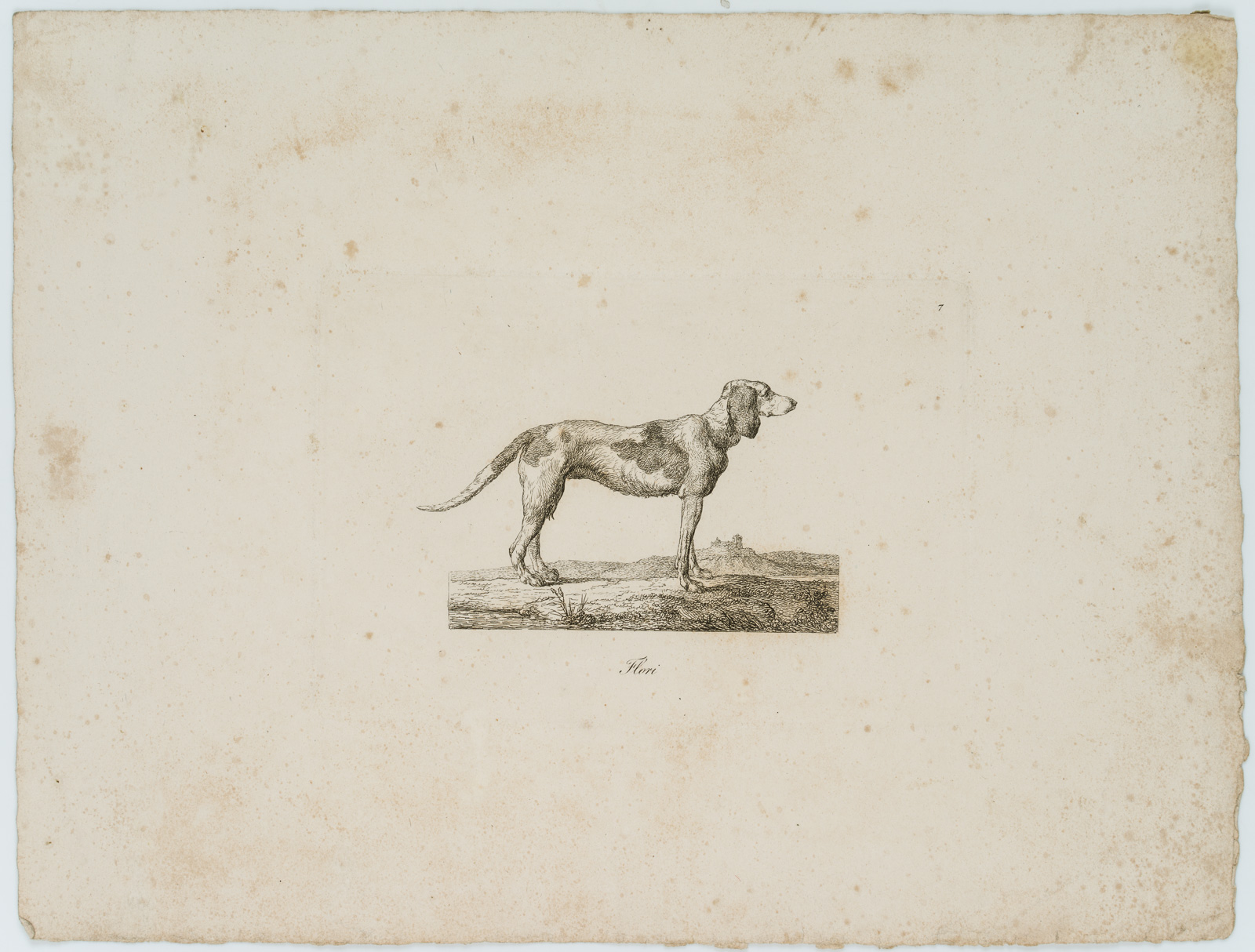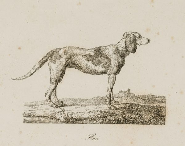 - Description: Titled “Flori” in the centre below the depiction, numbered “7” in the upper right corner of the printing plate. Very fine depiction of animals by the Danish battle, animal and genre painter and graphic artist Christian David GEBAUER (1777 Neusalz an der Oder, Lower Silesia – 1831 Aarhus). Gebauer studied from 1800 in Copenhagen and from 1813 to 1814 in Dresden, 1826-27 in Munich and Vienna. During his stay in Dresden he worked as a battle painter and specialised in the depiction of dramatic and entertaining scenes. He also created some etchings, for example with motifs of Cossacks, travelling artists and of the royal Danish stud farm at Frederiksborg, which he executed carefully with particular interest in the movements of the people and animals.