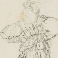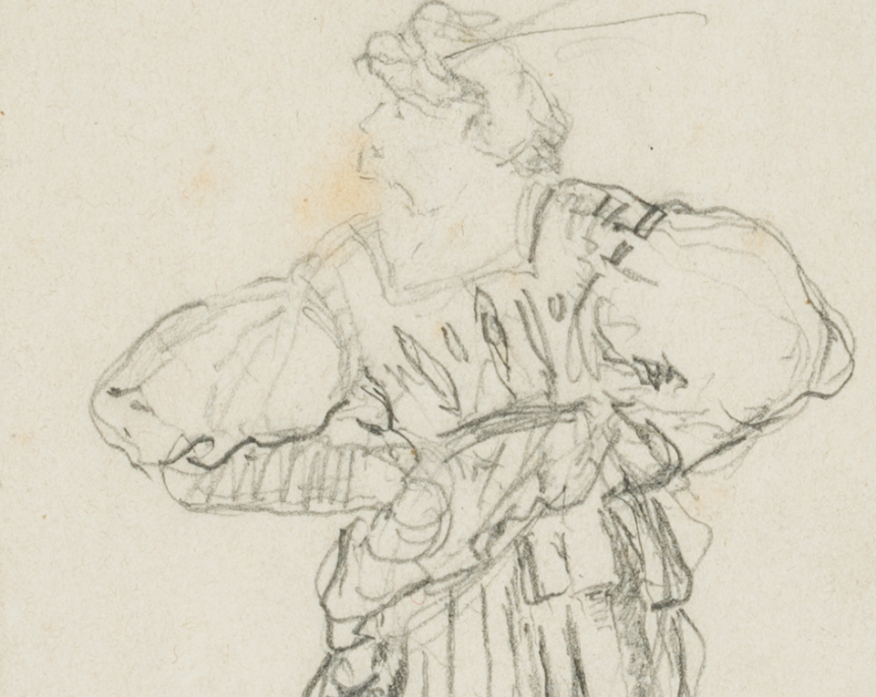Caspar Augustin Geiger (1847 Lauingen – 1924 München), Porträt. Gewandstudie einer höfischen Tracht mit Wams, 19. Jahrhundert, Bleistift