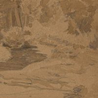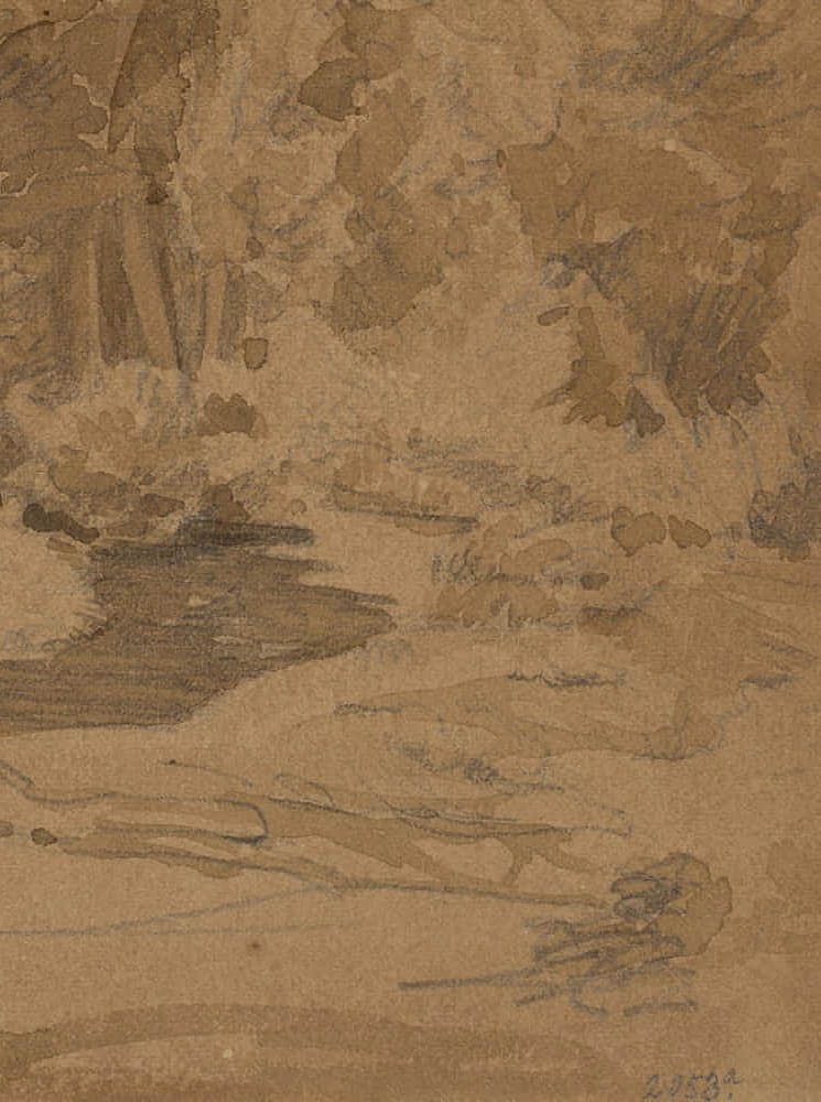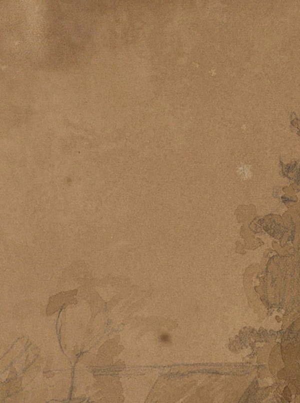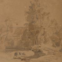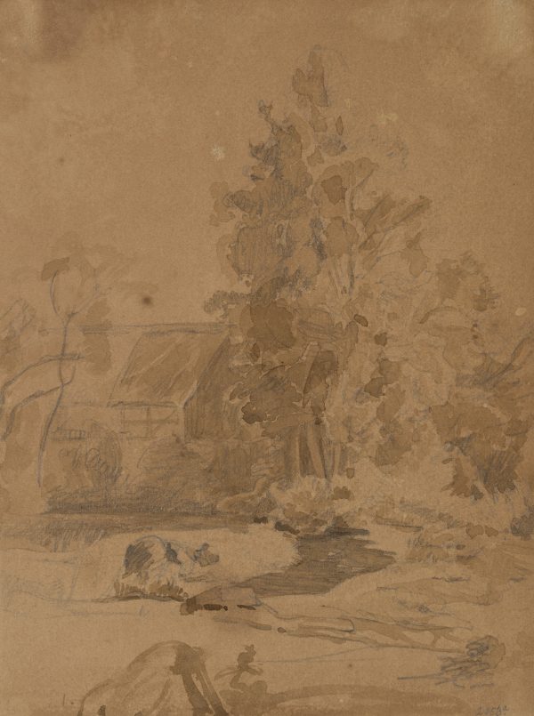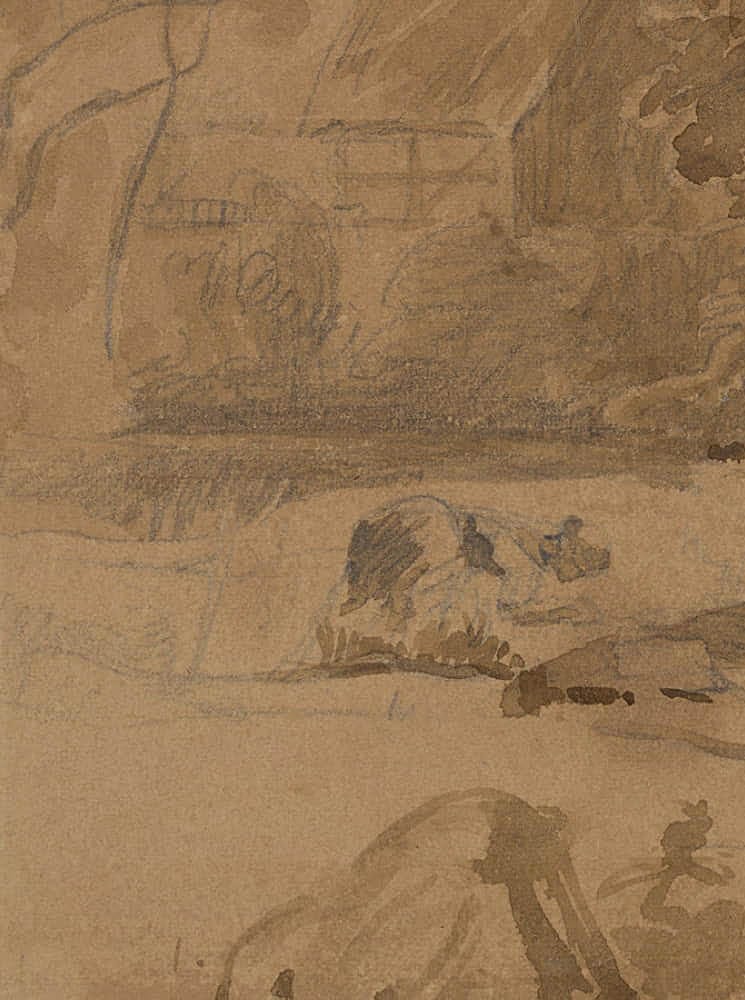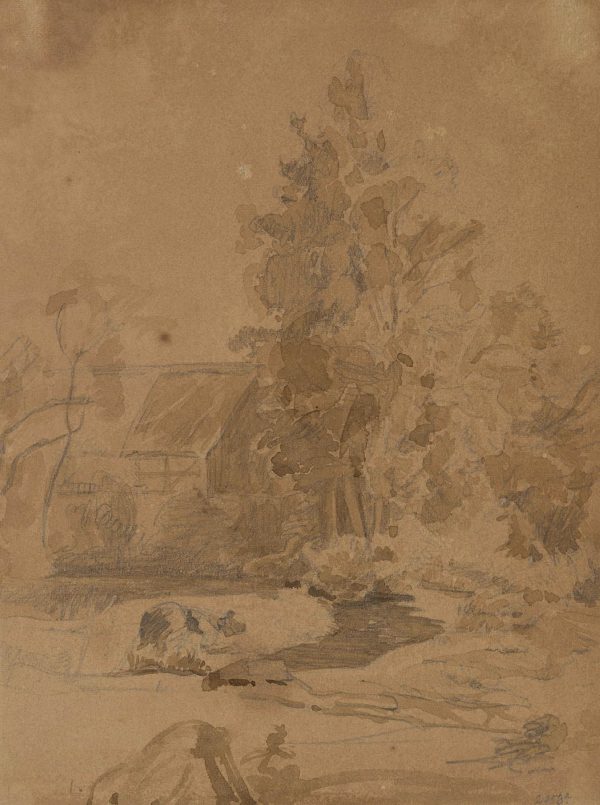 - Beschreibung: Ländliche Naturskizze mit Figur.