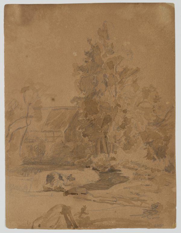 Christian Friedrich Gille (1805 Ballenstedt am Harz – 1899 Dresden), Frau an einer Mühle, um 1850, Bleistift