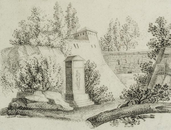 Charles de Graimberg (1774 Purple – 1865 Heidelberg), 2 Landscapes with fortress-like architecture, 18th century, Charcoal