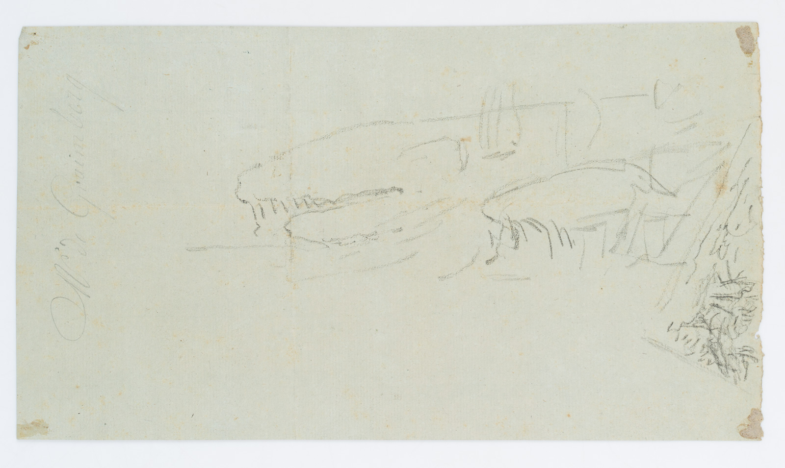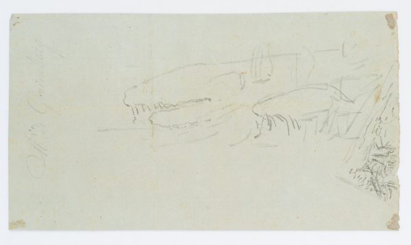 - Verso: Verso ist ein Teil einer flüchtigen Bleistifskizze nebst der schwungvollen Signatur des Künstlers zu erkennen.