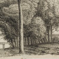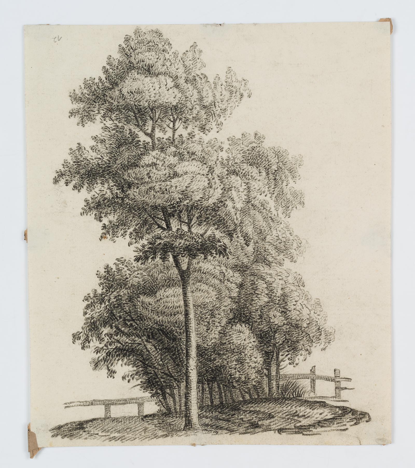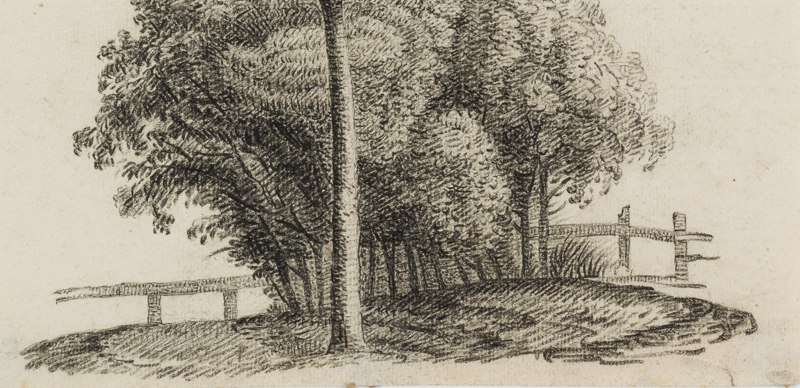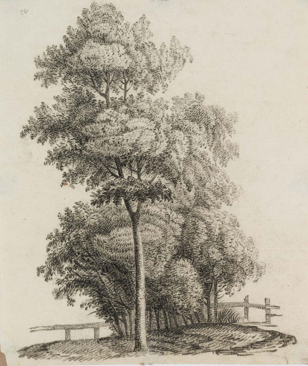 Charles de Graimberg (1774 Purple – 1865 Heidelberg), Landscape with group of trees and small fence, c. 1800, Charcoal