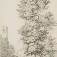 - Description: Louis Charles François de Graimberg (*1774 near Château-Thierry-1864 in Heidelberg) was a Romantic painter and draughtsman who also made a name for himself as a collector, museum founder and monument conservator. His studies of nature bear witness to an intensive engagement with the Romanticists’ ideas of nature. The charcoal and pencil drawing shows a romantic landscape with the keep of a medieval castle in the background. In many cases, the motifs of the drawings found their way into the large-format paintings in his adopted home of Heidelberg. | Watermark: unidentifiziert