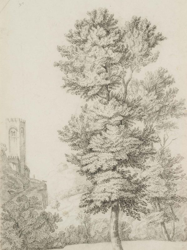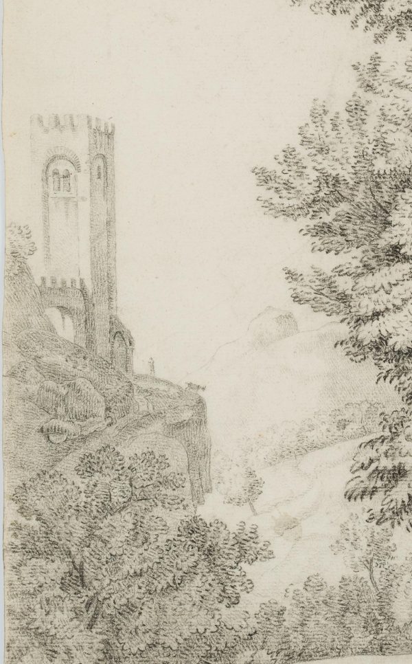 Charles de Graimberg (1774 Paars – 1865 Heidelberg), Landschaft mit Bergfried, um 1800, Kohle