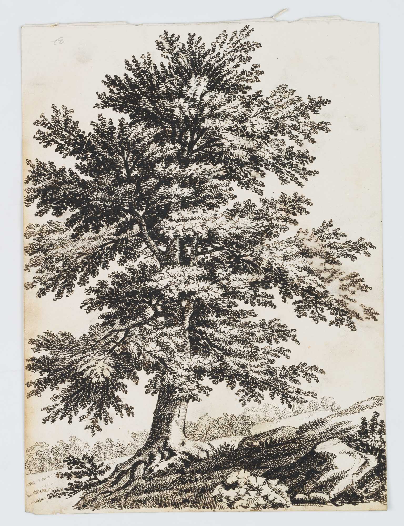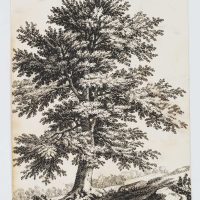 - Description: Louis Charles François de Graimberg (*1774 near Château-Thierry-1864 in Heidelberg) was a Romantic painter and draughtsman who also made a name for himself as a collector, museum founder and monument conservator. His studies of nature bear witness to an intensive engagement with the Romanticists’ ideas of nature. The ink study shows a large tree with dense foliage against a hilly landscape backdrop. In many cases, the motifs of the drawings found their way into the large-format paintings of his adopted home Heidelberg.