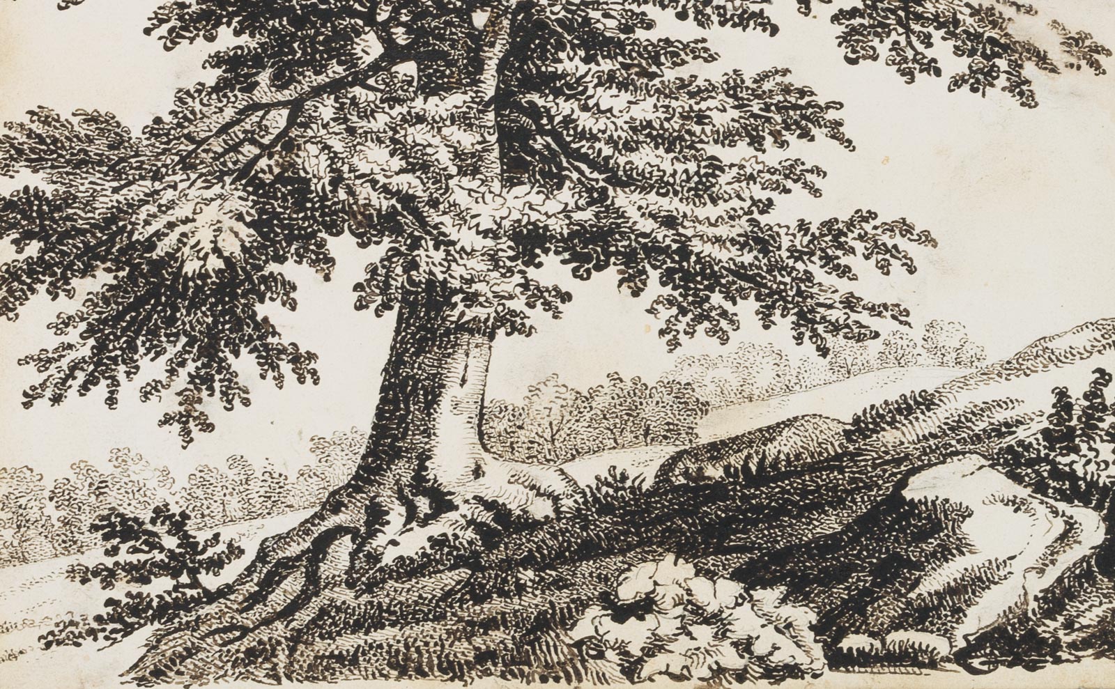 Charles de Graimberg (1774 Purple – 1865 Heidelberg), Landscape with mighty tree, c. 1800, Indian ink