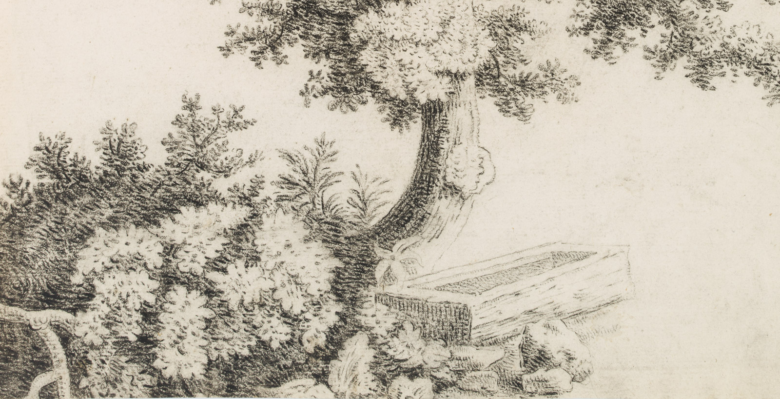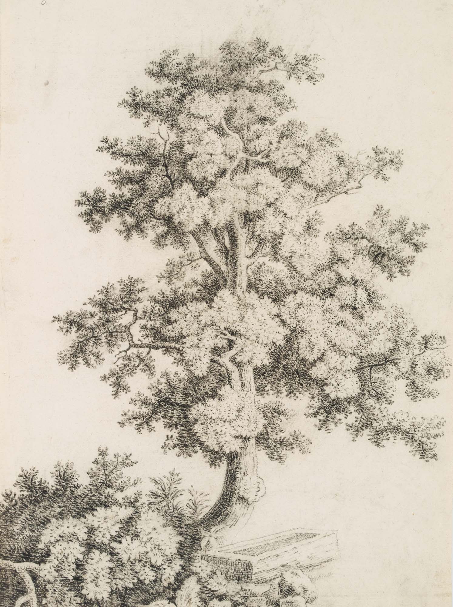 Charles de Graimberg (1774 Paars – 1865 Heidelberg), Laubbaum und Tränke, um 1800, Kohle