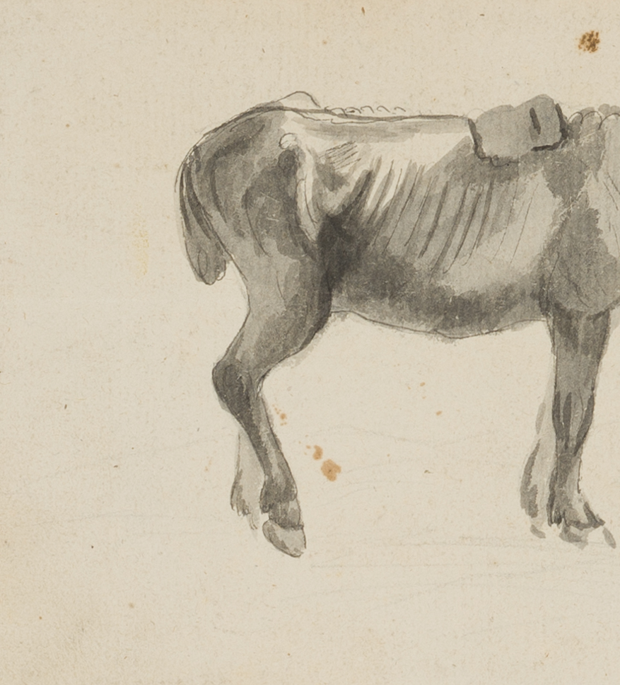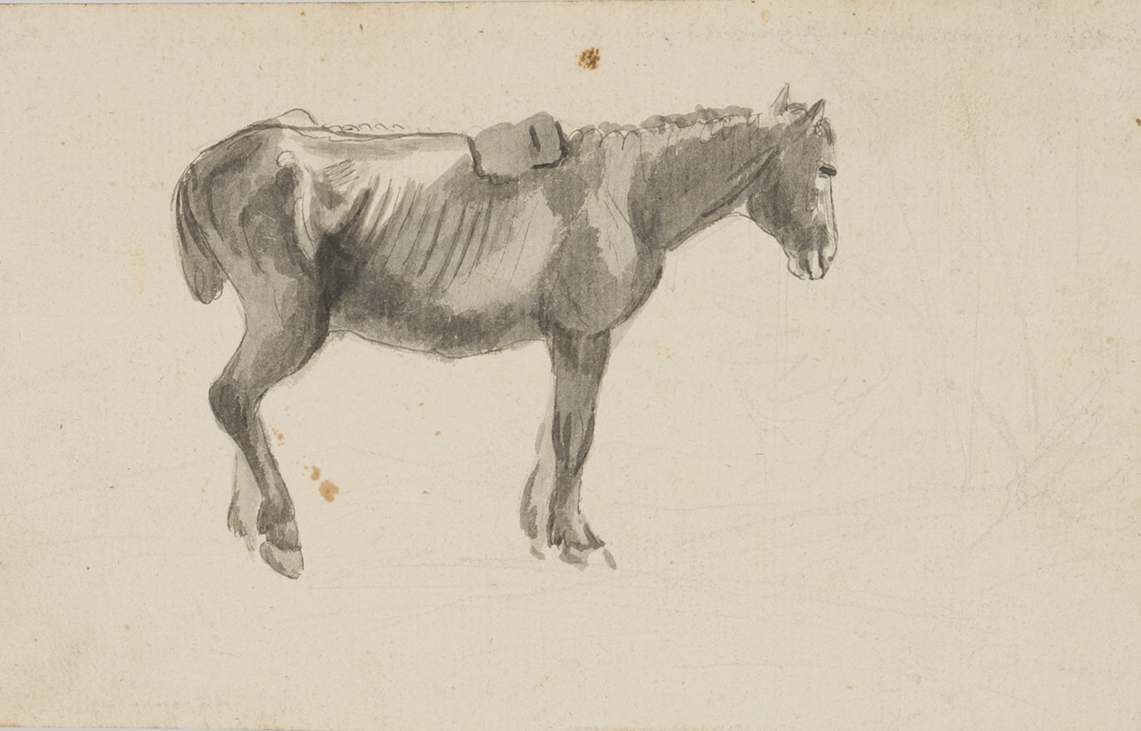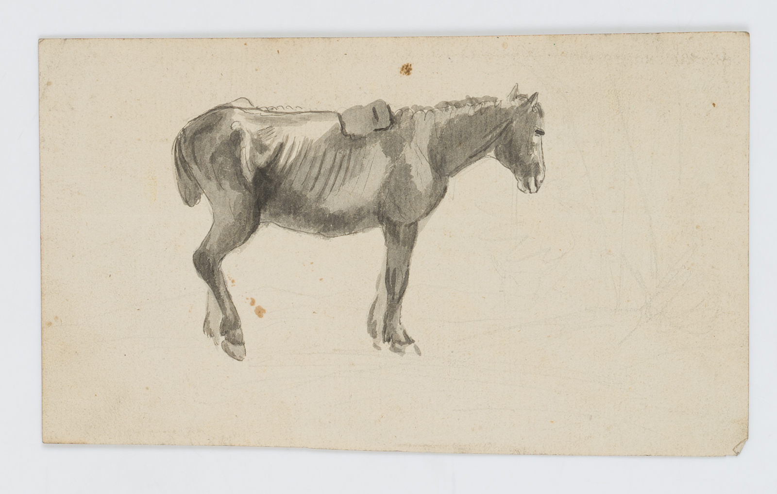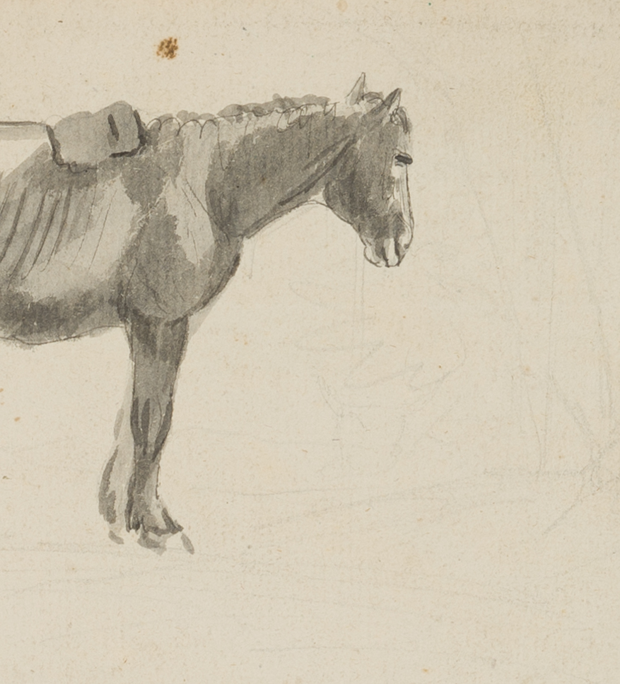 - Description: Louis Charles François de Graimberg (*1774 near Château-Thierry-1864 in Heidelberg) was a Romantic painter and draughtsman who also made a name for himself as a collector, museum founder and monument conservator. His studies of nature bear witness to an intensive engagement with the Romanticists’ ideas of nature. The watercolour shows a horse. The motifs of the drawings often found their way into the large-format paintings of his adopted home Heidelberg.