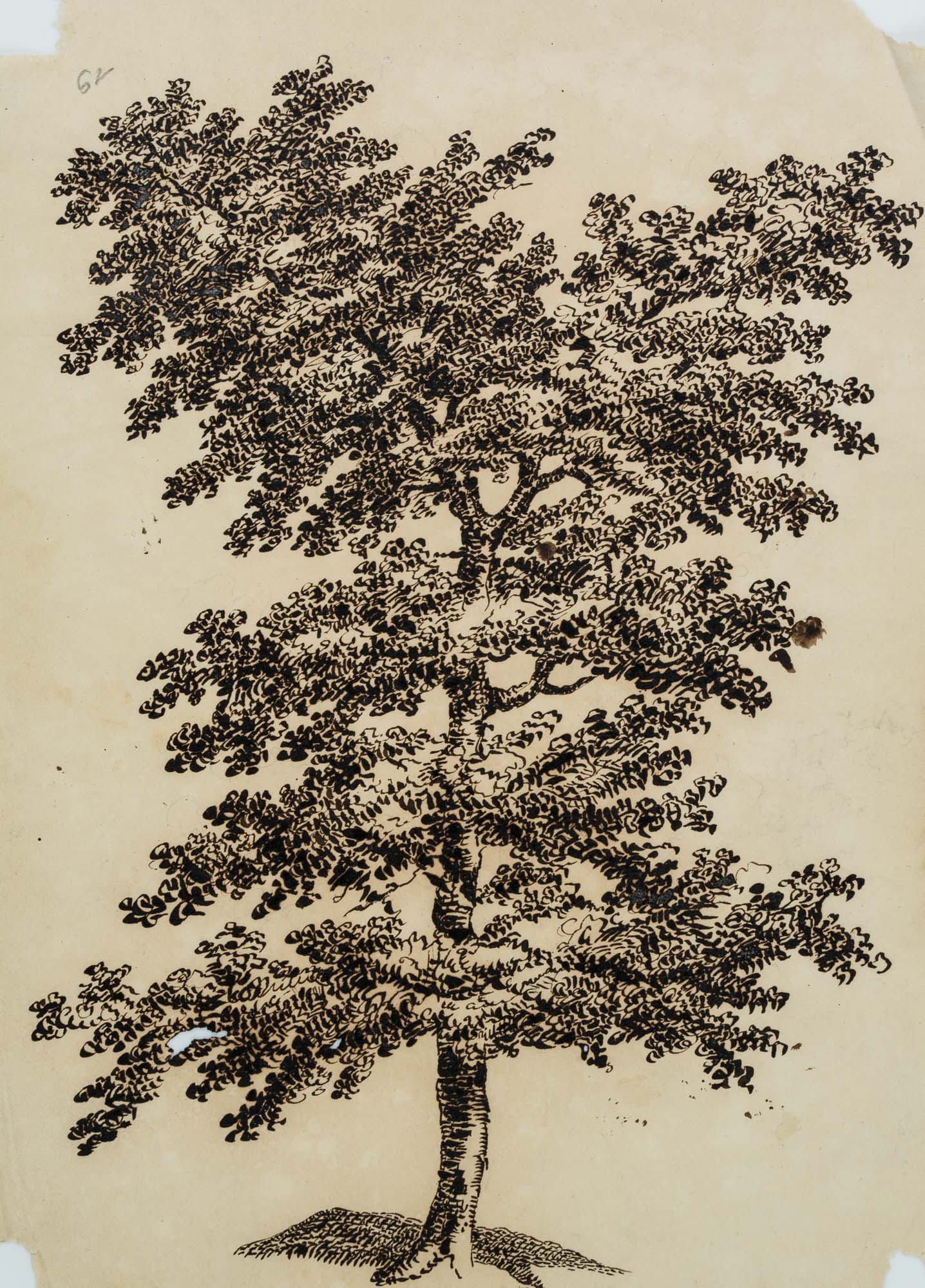 Charles de Graimberg (1774 Paars – 1865 Heidelberg), Porträt eines Laubbaumes verm. Eiche, 18. Jahrhundert, Federzeichnung
