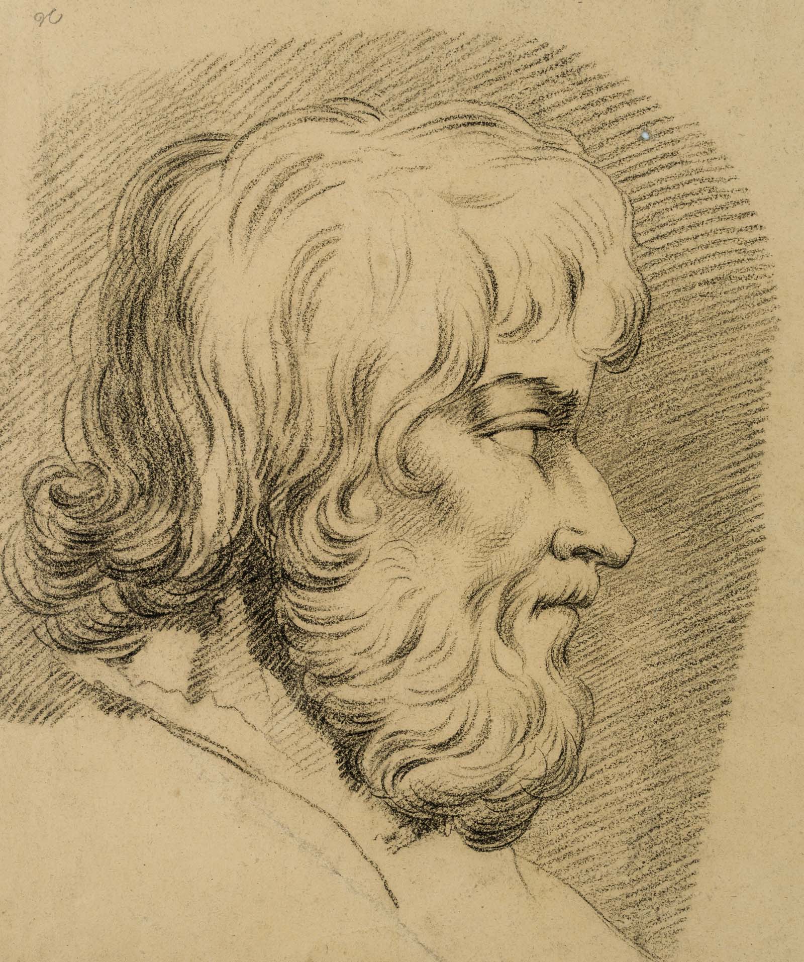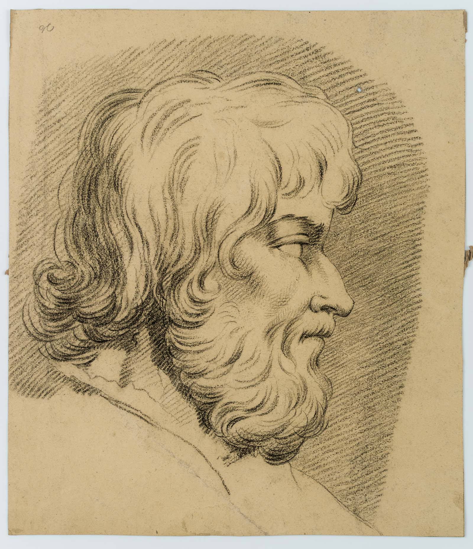 Charles de Graimberg (1774 Paars – 1865 Heidelberg), Portrait eines bärtigen Mannes im Profil, 18. Jahrhundert, Kohle