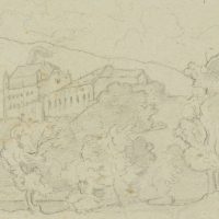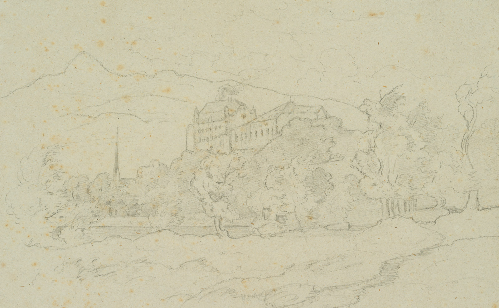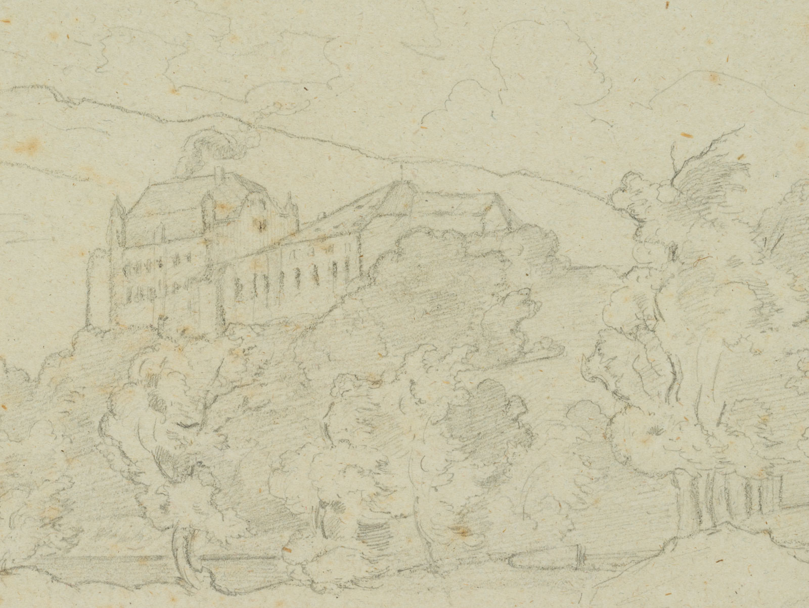 Carl Häfner (1814 Lübeck – 1873 Munich), View of a landscape with a castle, c. 1840, Pencil