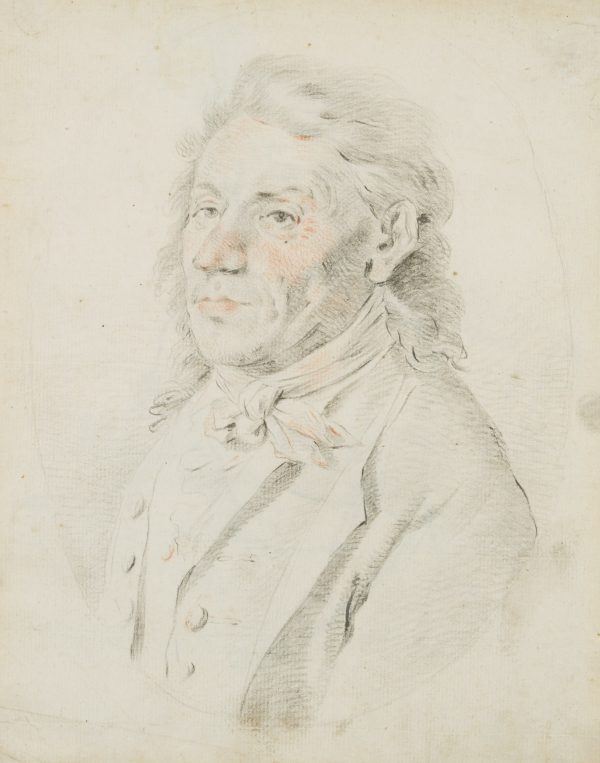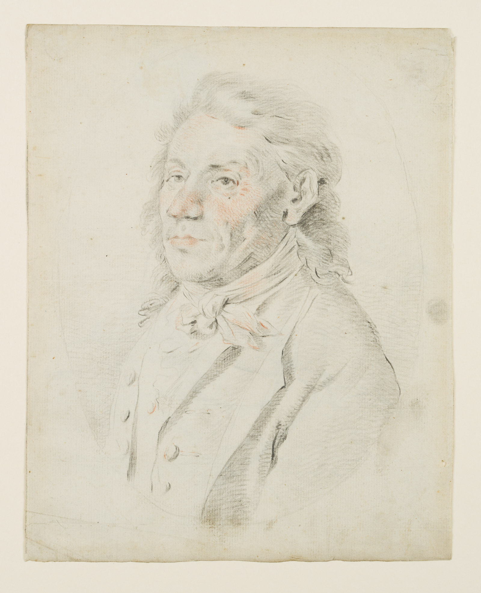- Description: The portrait shows the features of a man in the middle of his life, no longer youthful and not yet old. The serious, sober gaze is directed into the distance, the head is covered with lightly curled hair. The years have left deep marks on his face. The sitter’s clothing, with tie, buttoned waistcoat and frock coat, suggests his middle-class status. In comparison with other portraits of the time and of the artist, the sitter bears a strong resemblance to a portrait of Professor Reinhart by Christoph Haller von Hallerstein in 1808, who could be the artist and professor Johann Christian Reinhart. Verso another drawing, this time a portrait of a richly robed lady with luxuriant curls. She is depicted sitting on a chair, her left arm resting on a small table, her right hand resting in her lap. Christoph Haller von Hallerstein first studied in Stuttgart from 1797-98 under the theatre painter Viktor Wilhelm Peter Heideloff, where he also met Johann Heinrich Dannecker and Johann Gotthard von Müller. In 1799 he stayed in Dresden and became acquainted with Anton Graff. From 1800 to 1808 he taught the Crown Prince (later King Frederick William IV) to draw in Berlin and painted portraits of the royal family and numerous noblemen. After his return to Nuremberg, he was appointed curator of the picture gallery in the Moritz Chapel in Nuremberg and teacher of perspective at the Nuremberg School of Arts and Crafts, where he also taught Carl Ferdinand Mayer and Johann Georg Wolff, among others.