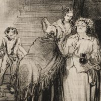 Charles Emile Jacque (1813 Paris – 1894 ibid.), Cartoon Marriage plans of old women, , Lithography
