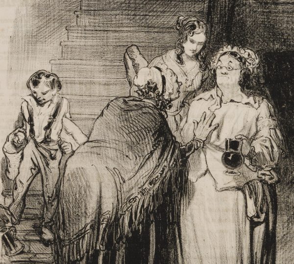 Charles Emile Jacque (1813 Paris – 1894 ebd.), Karikatur. Heiratspläne alter Frauen, , Lithographie