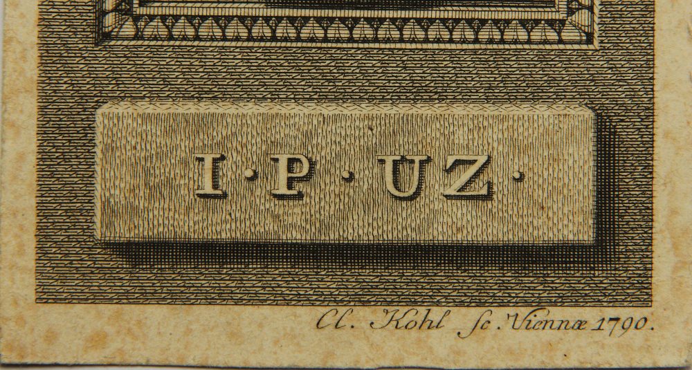 - Beschreibung: unterhalb der Darstellung mit den Initialen des Dargestellten versehen “I.P.UZ”. Darunter auf 1790 datiert.