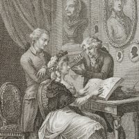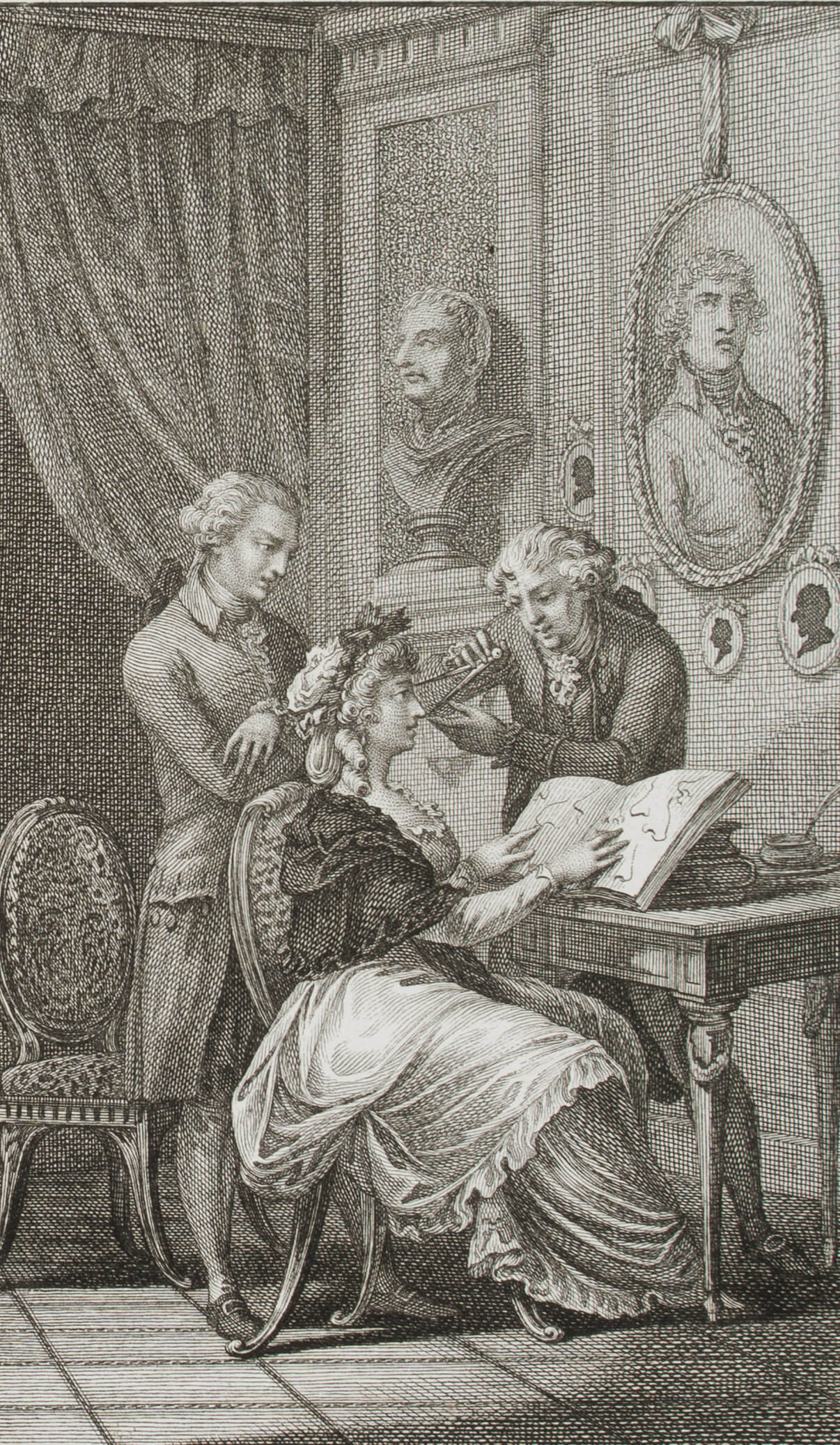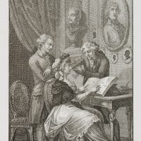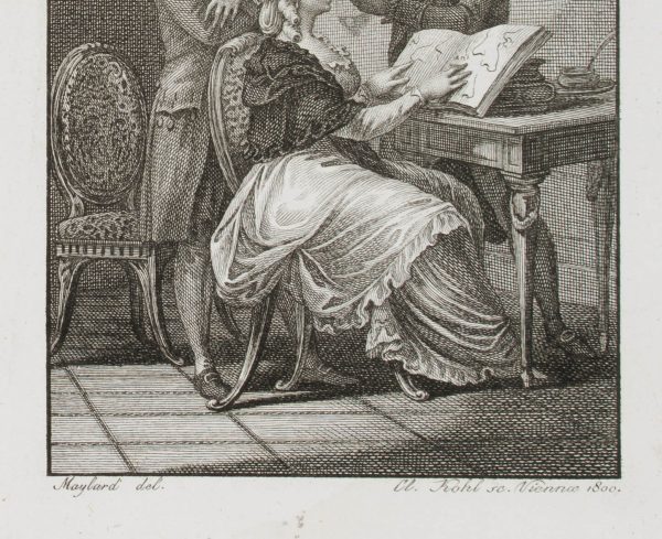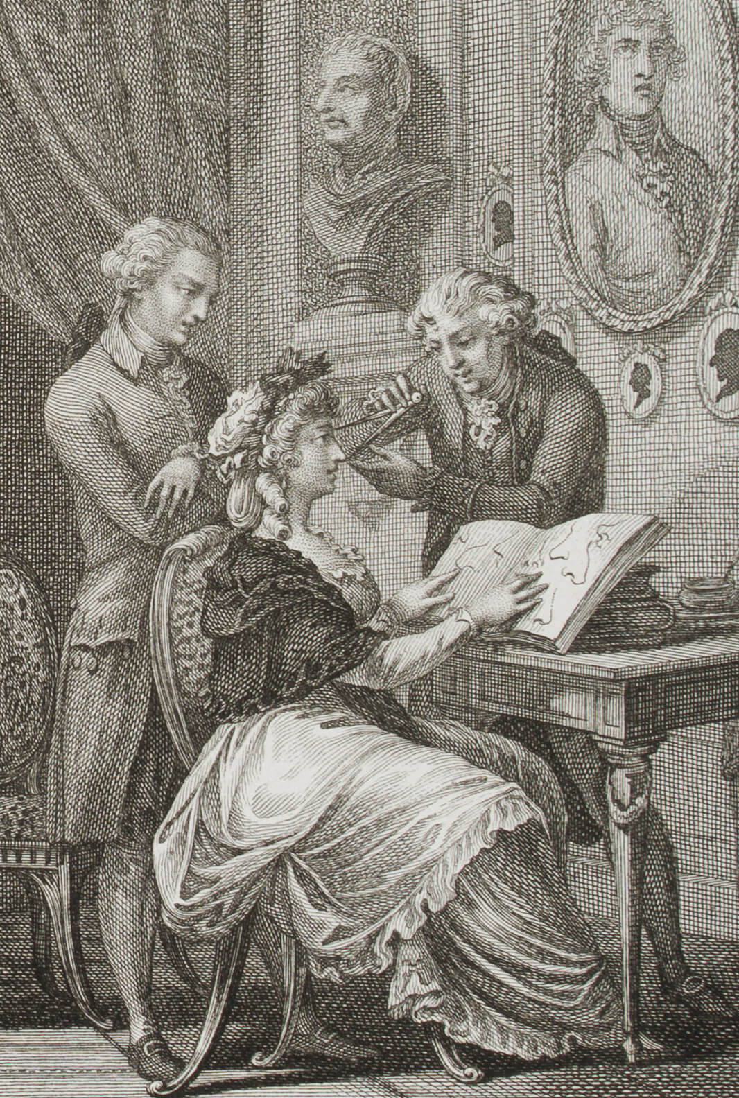 C.L. Kohl (19th century), Artist with model. Measuring for a silhouette, 1800, Etching