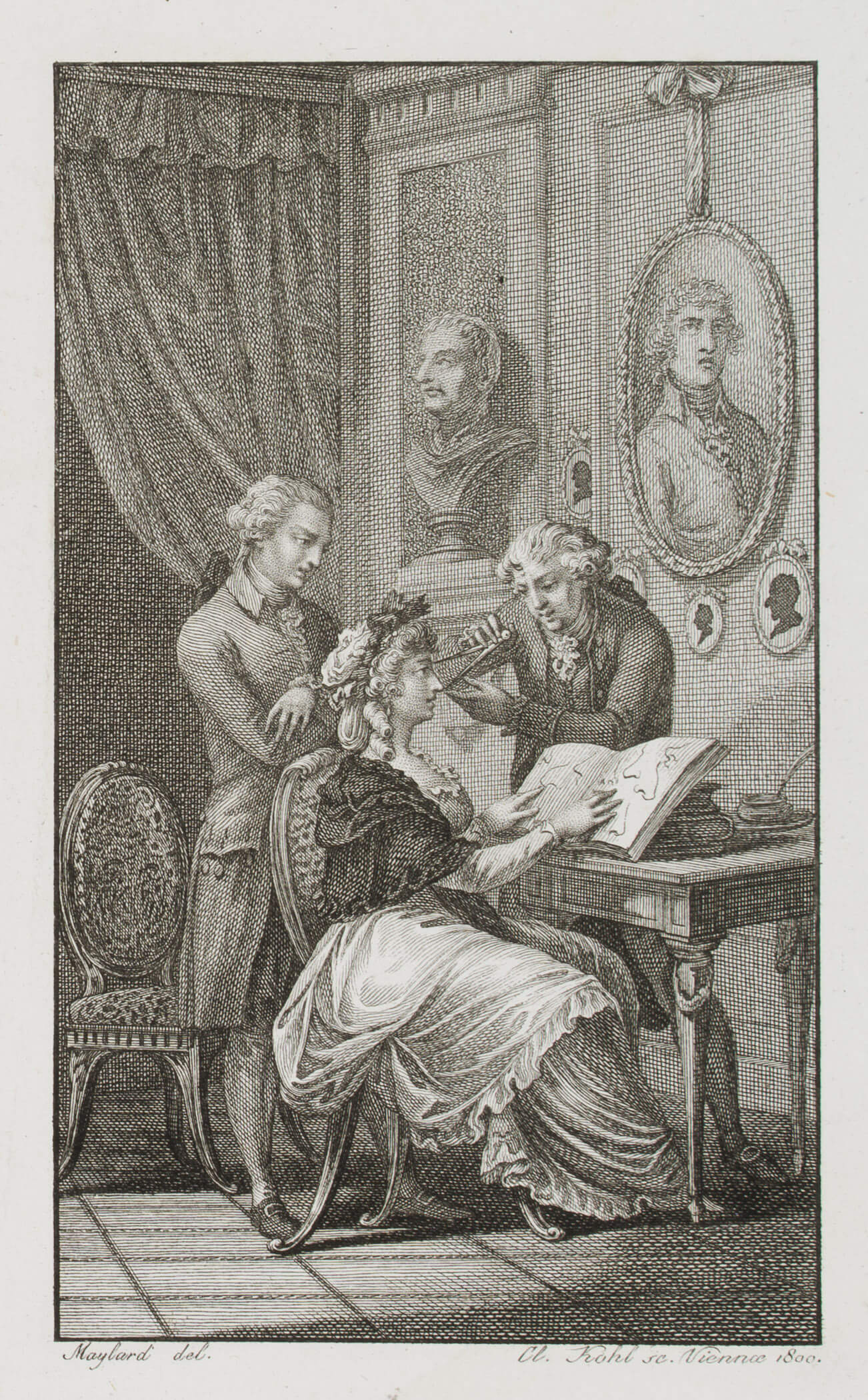 C.L. Kohl (19. Jahrhundert), Künstler mit Model. Beim Vermessen für einen Scherenschnitt, 1800, Radierung
