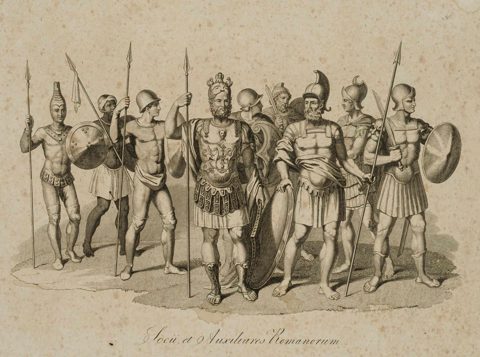 Carl Kotterba (1800 Teschen – 1859 Vienna), “Socii et Auxiliares Romanorum”, Rome, Antiquity, Military, 19th century, Copper engraving