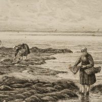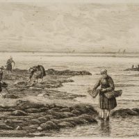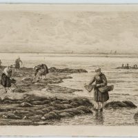Carl Lacher (1850 Uttenhofen – 1908 Graz), Mussel seekers on the mudflats, 1887, Etching