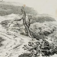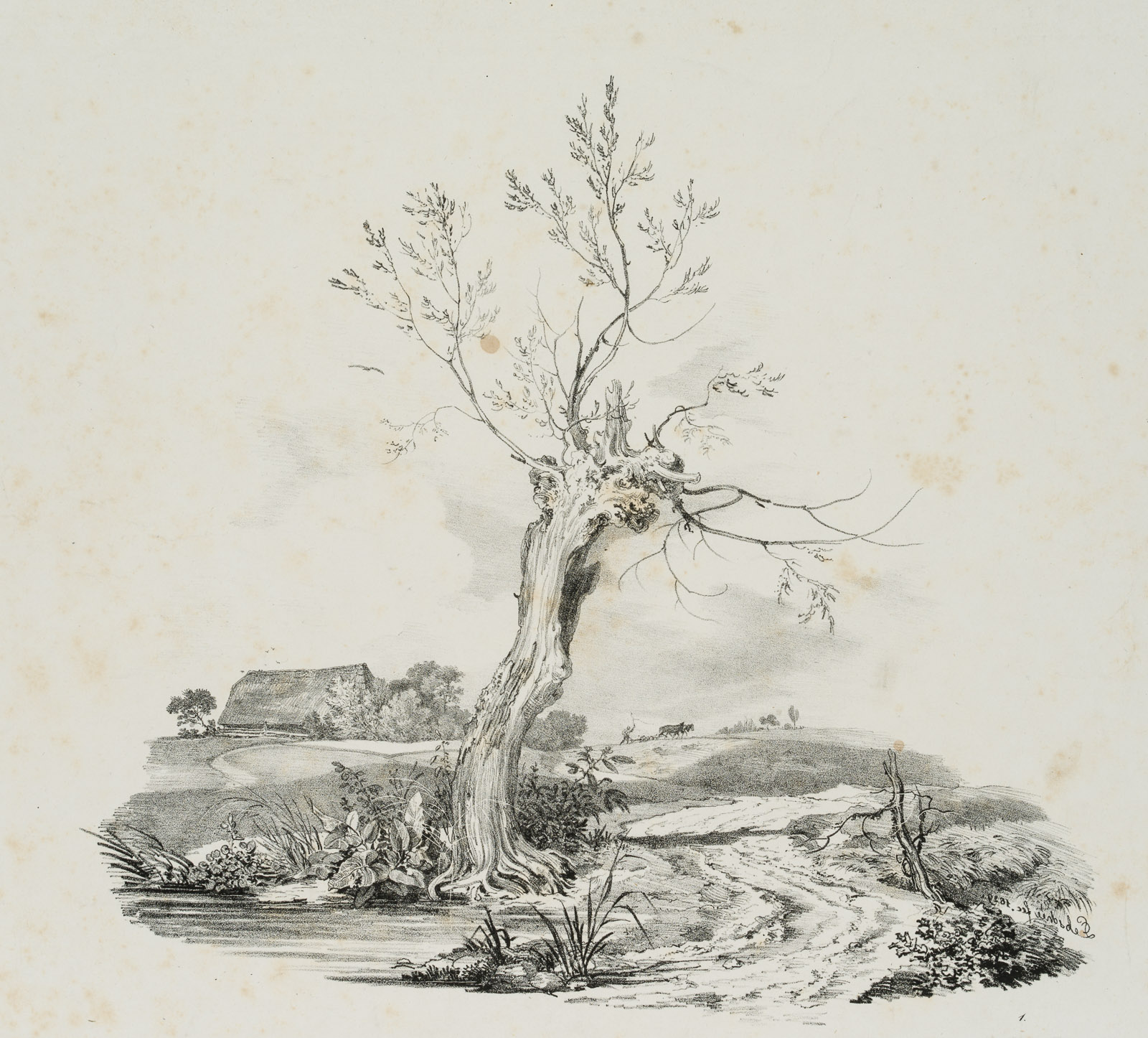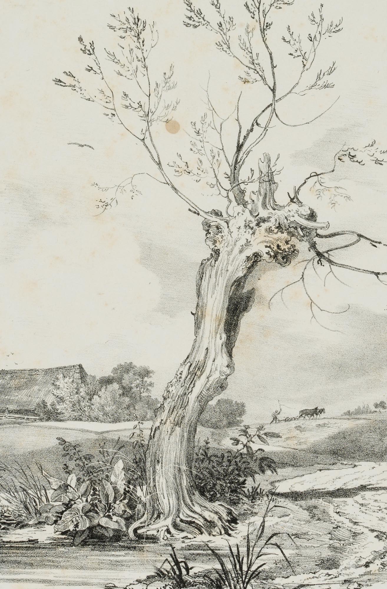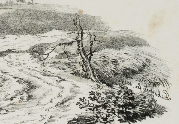 Carl August Lebschée (1800 Schmiegel – 1877 Munich), Landscape study with bare tree, 1829, Lithography