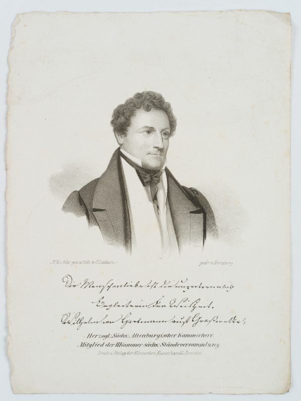 - Schlagworte: Sächsischer Landtag, Königreich Sachsen, Sächsische Ständeversammlung, Portrait, Bildnis, Politiker, Sachsen-Altenburg, Altenburgischer Kammerherr, Zweite Kammer, Porträt, Politik, Deutschland, Biedermeier, 1800-1849